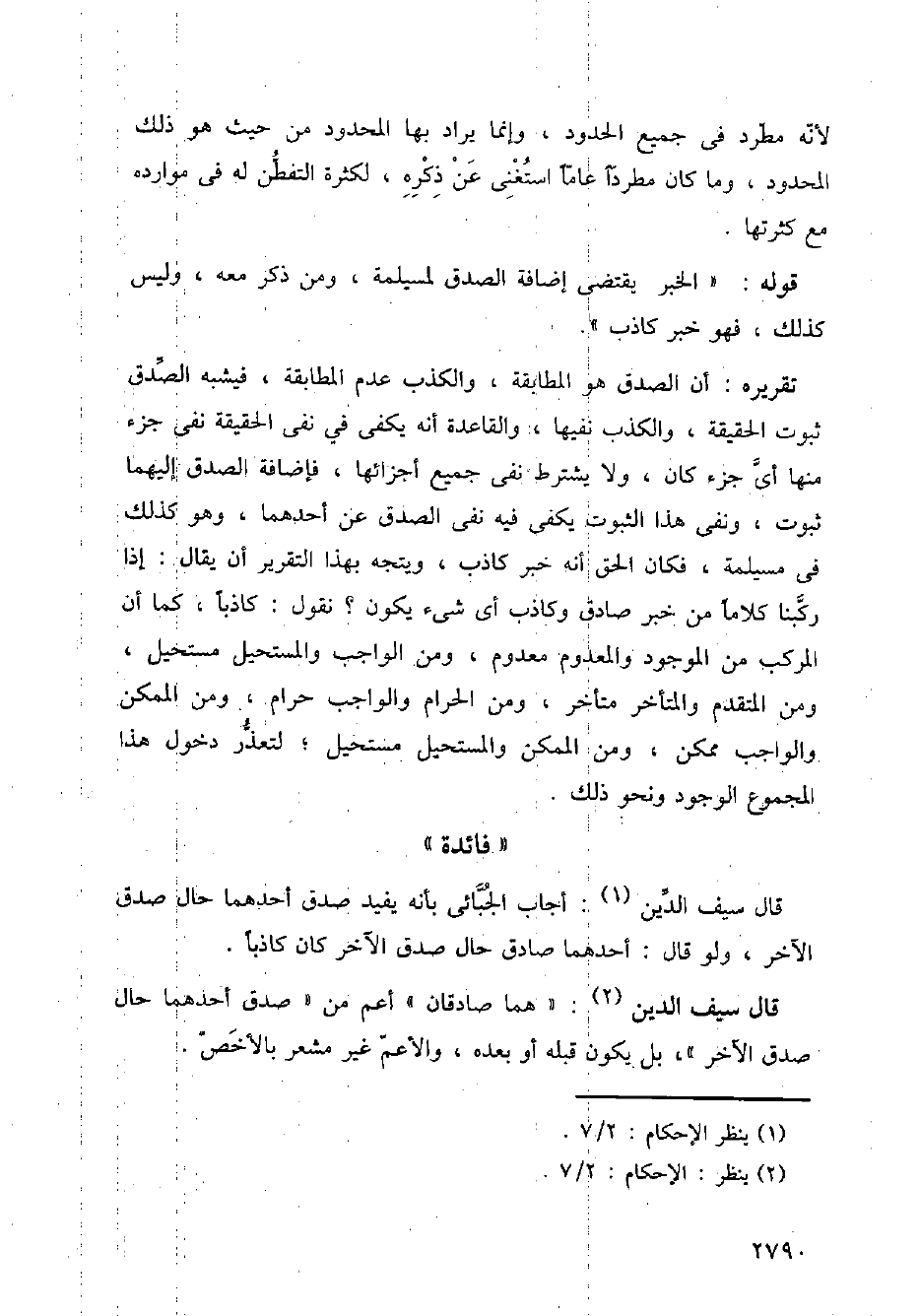 قال سيف الدين: "هما صادقان" أعم من "صدق أحدهما حال صدق الآخر"، بل يكون قبله أو بعده، والأعم غير مشعر بالأخص.