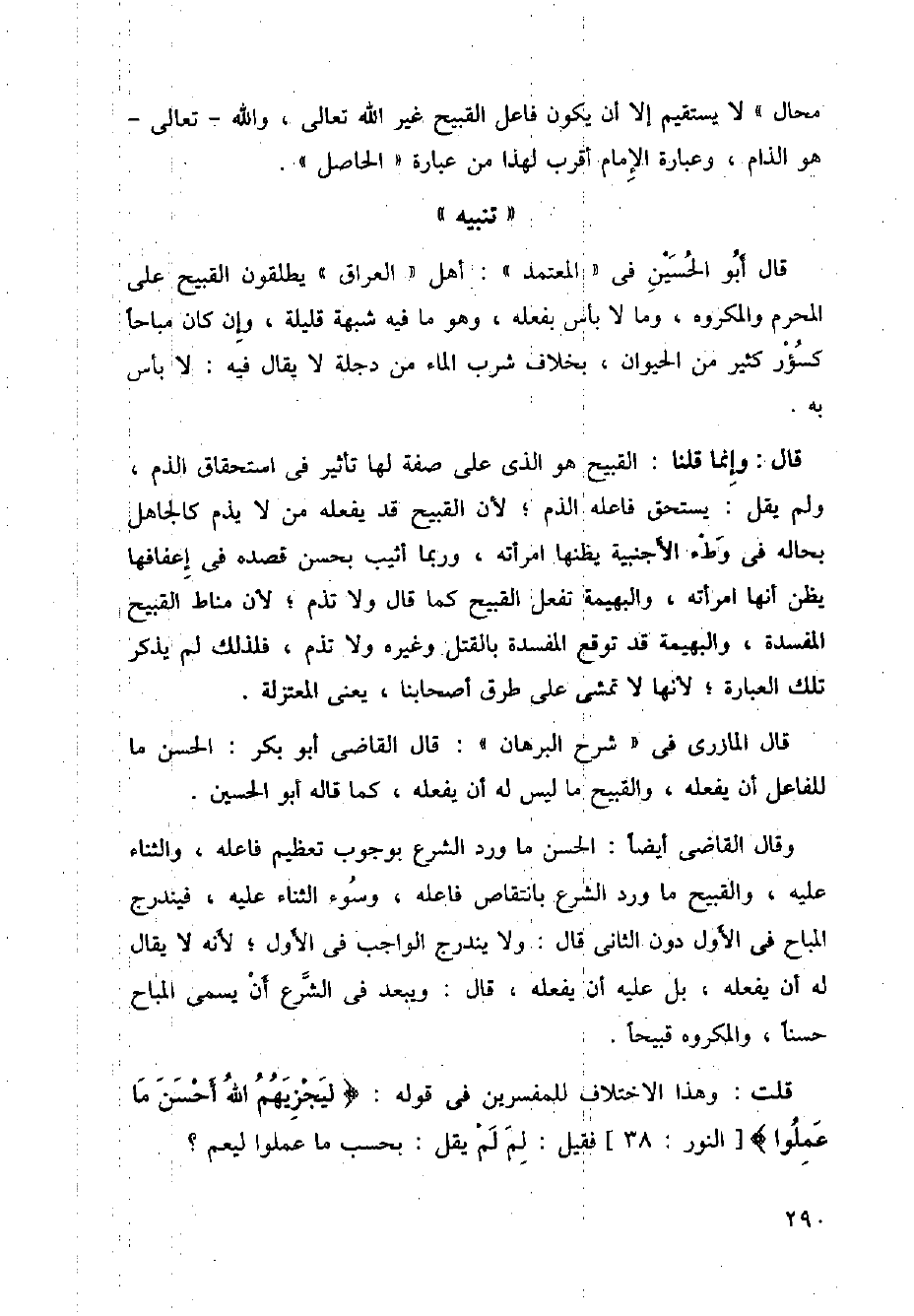 قال أبو الحسين في ((المعتمد)): أهل ((العراق)) يطلقون القبيح على المحرم والمكروه، وما لا بأس بفعله، وهو ما فيه شبهة قليلة، وإن كان مباحا كسؤر كثير من الحيوان، بخلاف شرب الماء من دجلة لا يقال فيه: لا بأس به.