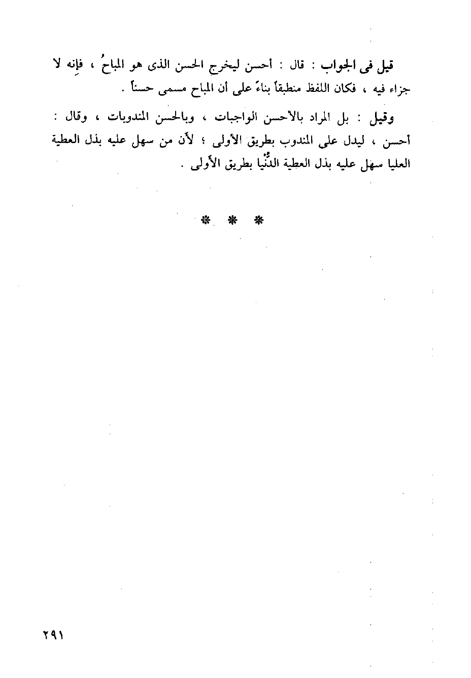 قيل في الواجب: قال: أحسن ليخرج الحسن الذي هو المباح، فإنه لا جزاء فيه، فكان اللفظ منطبقا بناء على أن المباح مسمى حسنا.