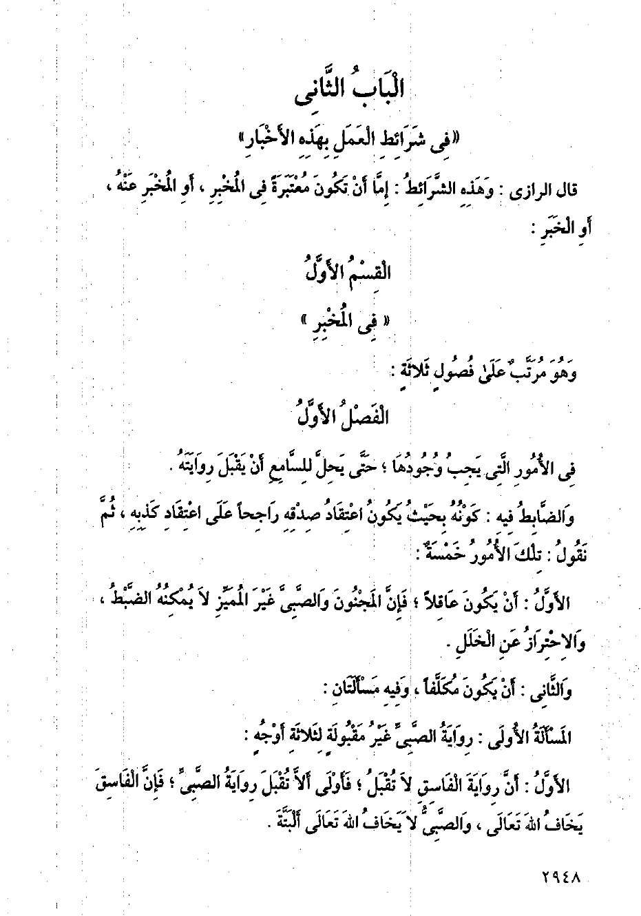 المسألة الأولى: رواية الصبي غير مقبولة لثلاثة أوجه: