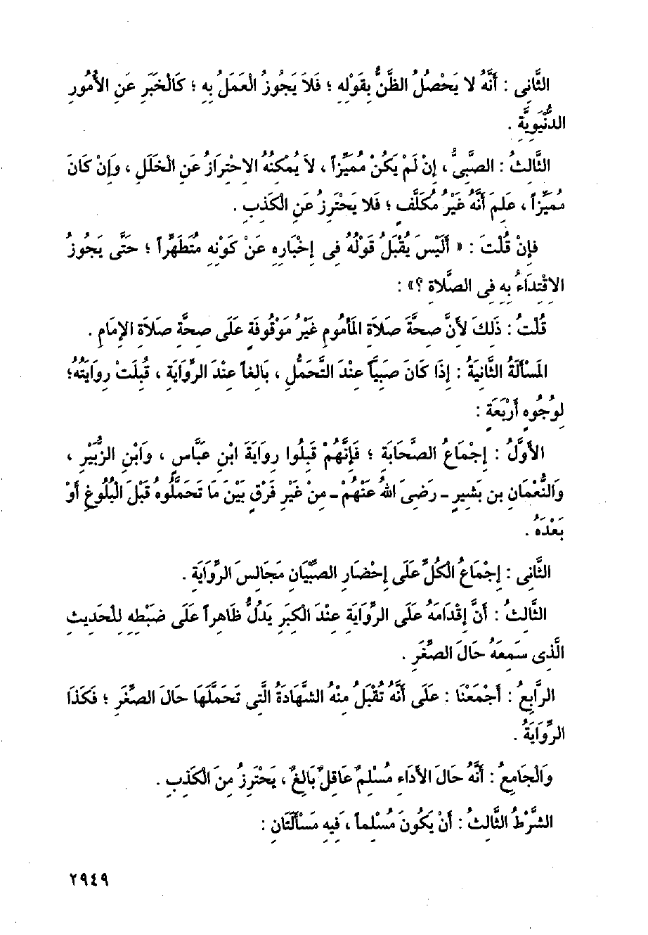 المسألة الثانية: إذا كان صبيًا عند التحمل، بالغًا عند الرواية، قبلت روايته؛ لوجوه أربعة: