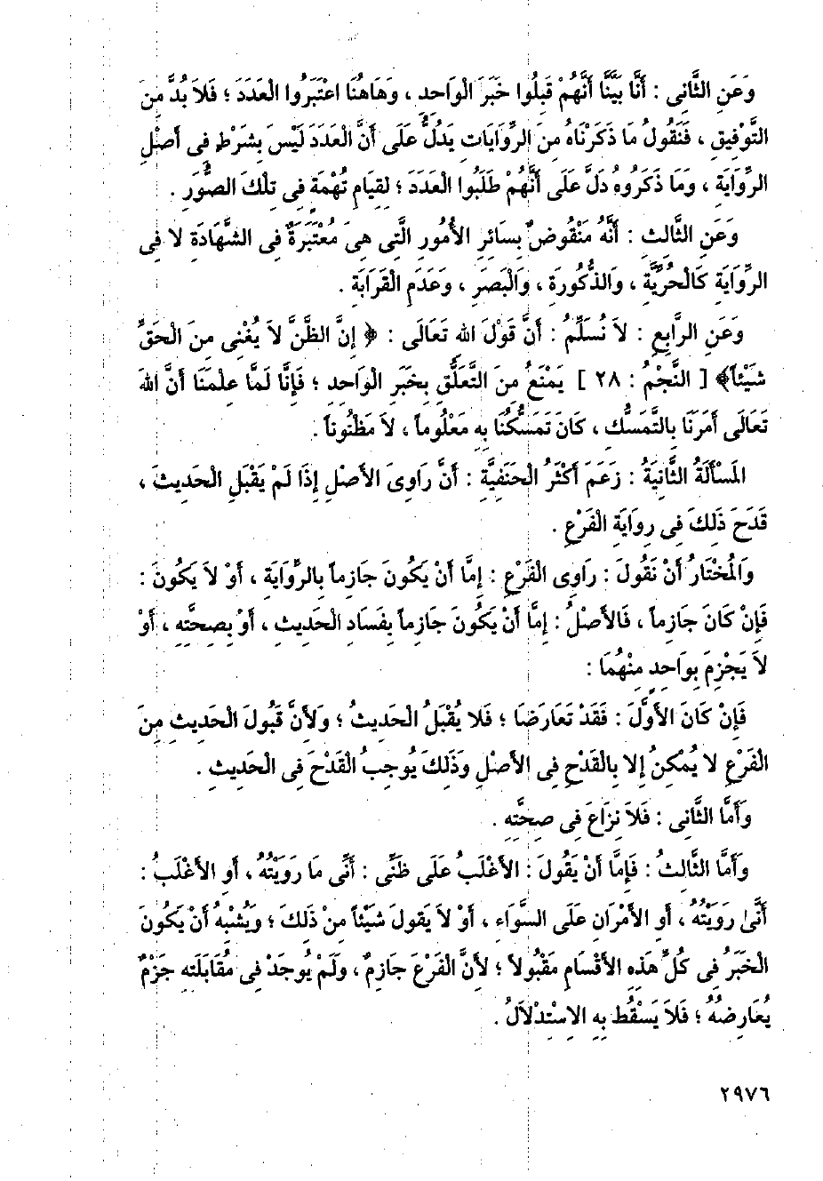 المسألة الثانية: زعم أكثر الحنفية: أن راوي الأصل إذا لم يقبل الحديث، قدح ذلك في رواية الفرع.