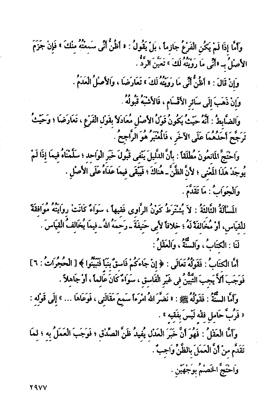 واحتج المانعون مطلقًا: بأن الدليل ينفي قبول خبر الواحد؛ سلمناه فيما إذا لم يوجد هذا المعنى؛ لأن الظن- هناك؛ فيبقى فيما عداه على الأصل.
