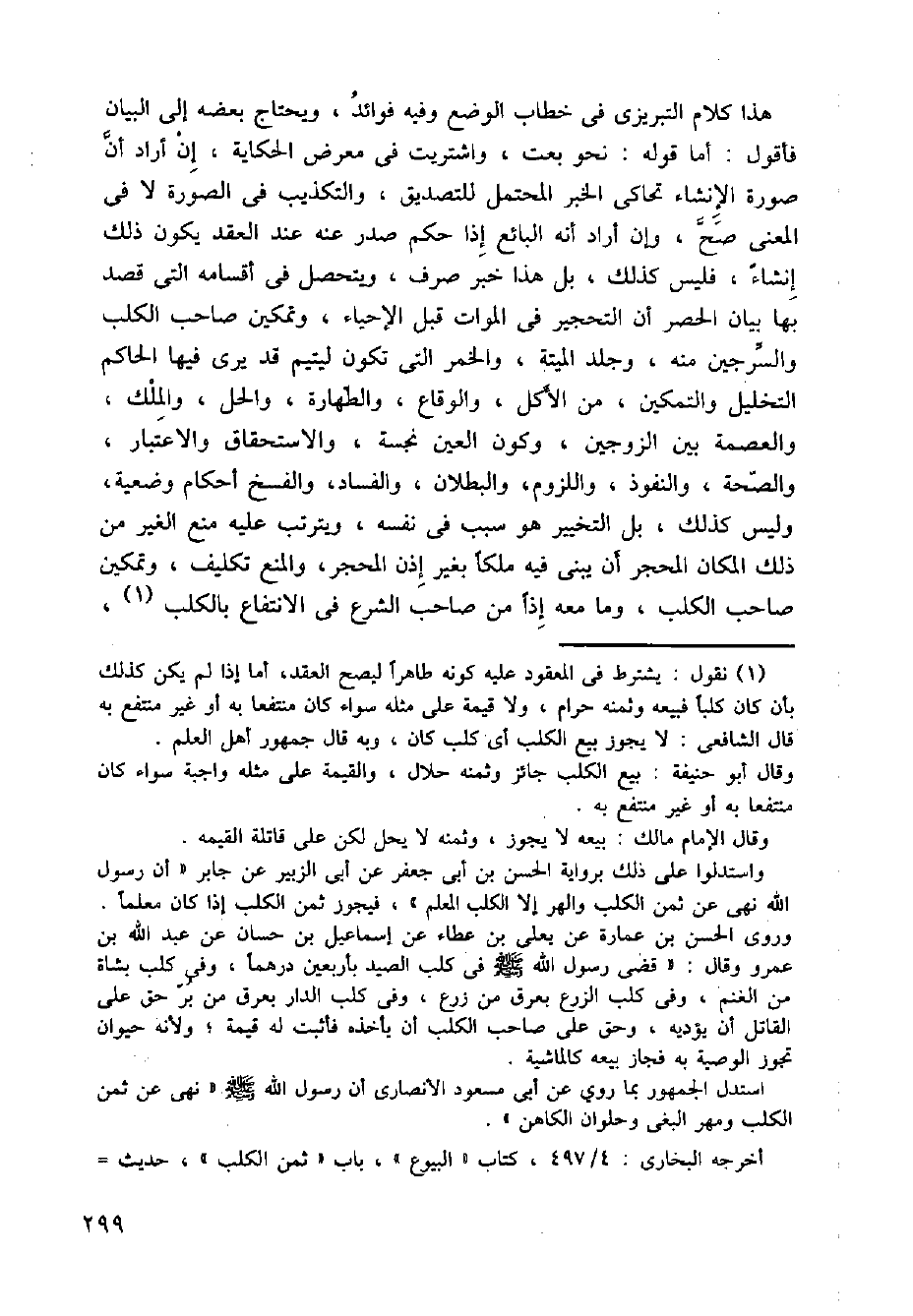 هذا كلام التبريزي في خطاب الوضع وفيه فوائد، ويحتاج بعضه إلى البيان فأقول: أما قوله: نحو بعت، واشتريت في معرض الحكاية، إن أراد أن صورة الإنشاء تحاكي الخبر المحتمل للتصديق، والتكذيب في الصورة لا في المعنى صح، وإن أراد أنه البائع إذا حكم صدر عنه عند العقد يكون ذلك إنشاء، فليس كذلك، بل هذا خبر صرف، ويتحصل في أقسامه التي قصد بها بيان الحصر أن التحجير في الموات قبل الإحياء، وتمكين صاحب الكلب والسرجين منه، وجلد الميتة، والخمر التي تكون ليتيم قد يرى فيها الحكام والعصمة بين الزوجين، وكون العين نجسة، والاستحقاق والاعتبار، والصحة، والنفوذ، واللزوم، والبطلان والفساد والفسخ أحكام وضعي وليس كذلك، بل التخير هو سبب في نفسه، ويترتب عليه منع الغير من ذلك المكان المحجر أن يبنى فيه ملكا بغير إذن المحجر، والمنع تكليف، وتمكين صاحب الكلب، وما معه إذا من صاحب الشرع في الانتفاع بالكلب،
