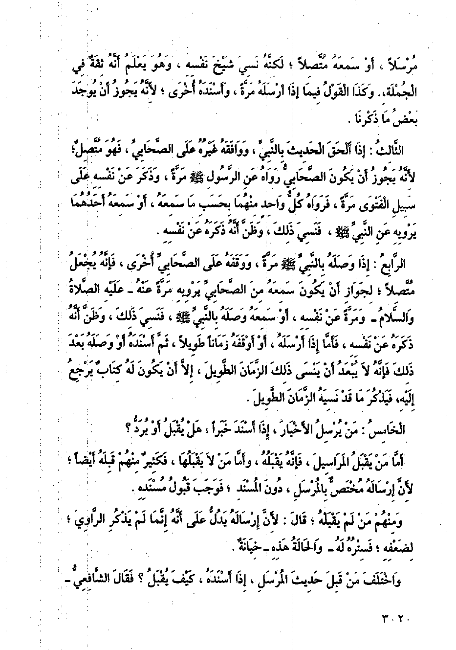 الرابع: إذا وصله بالنبي - صلى الله عليه وسلم - مرة، ووقفه على الصحابي أخرى، فإنه يجعل متصلًا؛ لجواز أن يكون سمعه من الصحابي يرويه مرة عنه -عليه الصلاة والسلام- ومرة عن نفسه، أو سمعه وصله بالنبي - صلى الله عليه وسلم -، فنسي ذلك، وظن أنه ذكره عن نفسه، فأما إذا أرسله، أو أوقفه زمانًا طويلًا، ثم أسنده أو وصله بعد ذلك فإنه لا يبعد أن ينسى ذلك الزمان الطويل، إلا أن يكون له كتاب يرجع إليه، فيذكر ما قد نسيه الزمان الطويل.