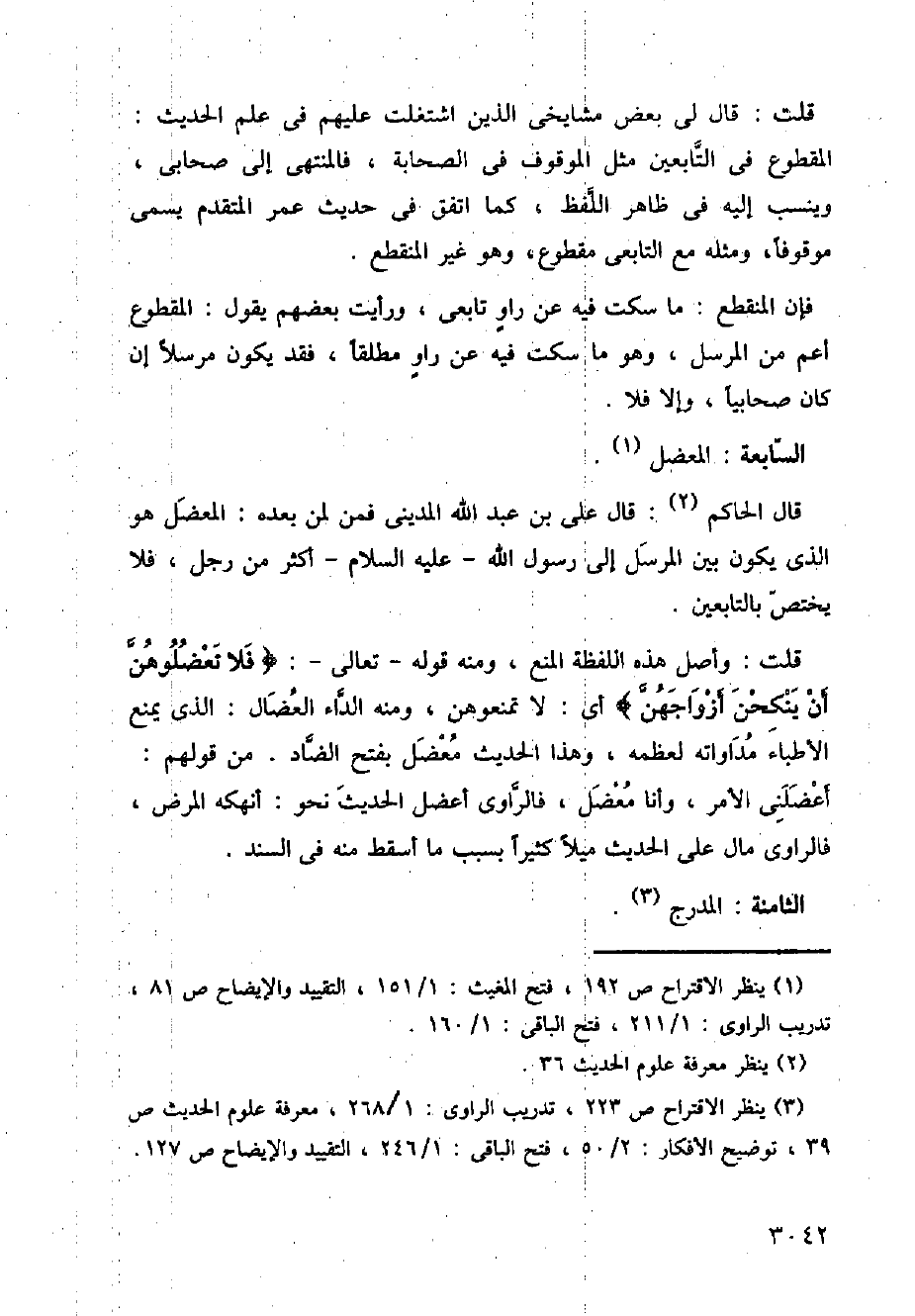 قال الحاكم: قال علي بن عبد الله المديني فمن لمن بعده: المعضل هو الذي يكون المرسل إلى رسول الله -عليه السلام- أكثر من رجل، فلا يختص بالتابعين.