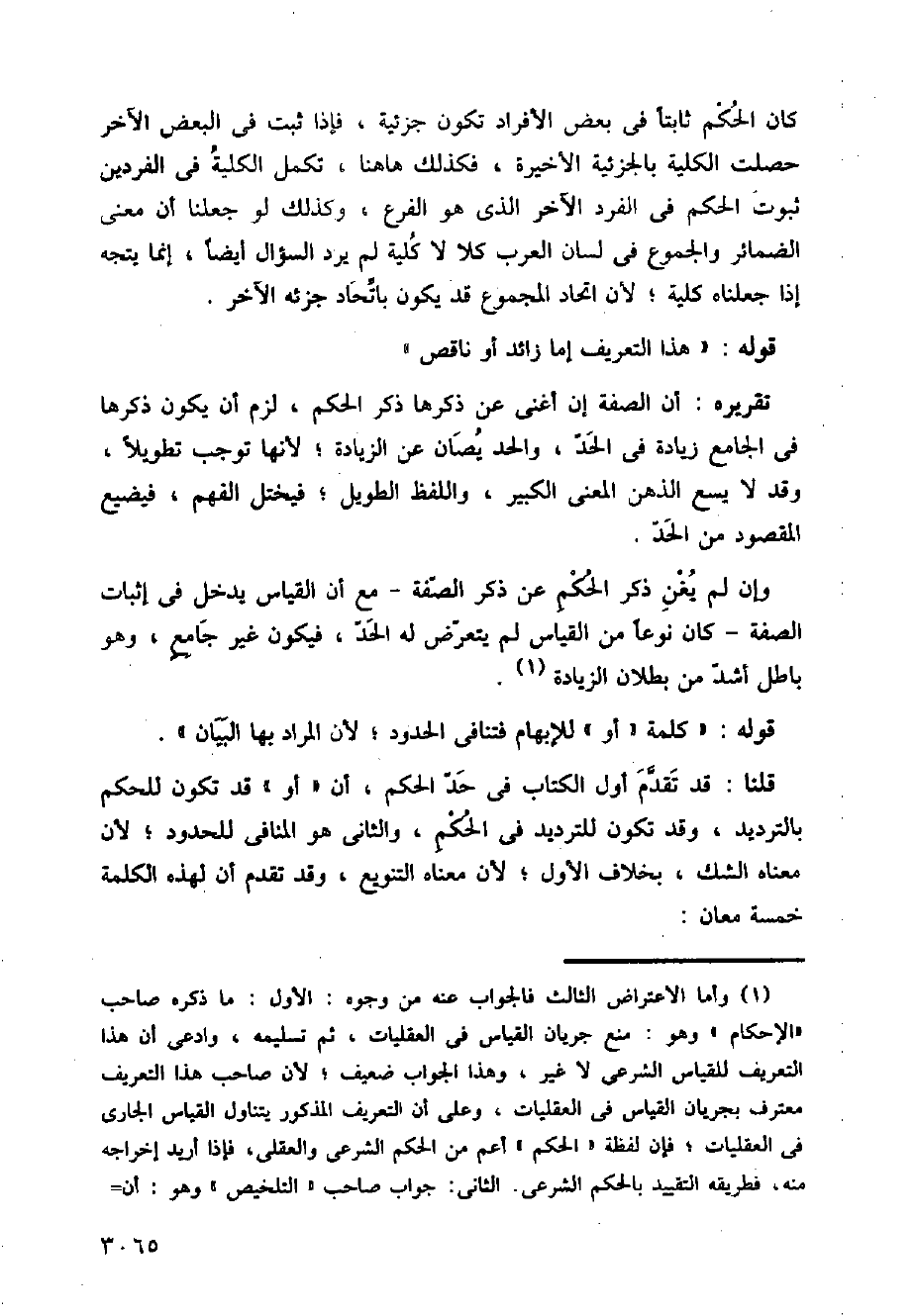 قلنا: قد تقدم أول الكتاب في حد الحكم، أن (أو) قد تكون للحكم بالترديد، وقد تكون للترديد في الحكم، والثاني هو المنافى للحدود؛ لأن معناه الشك، بخلاف الأول؛ لأن معناه التنويع، وقد تقدم أن لهذه الكلمة خمسة معان: