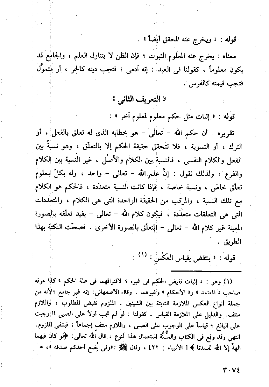تقريره: أن حكم الله - تعالى - هو خطابه الذي له تعلق بالفعل، أو الترك، أو التسوية، فلا تتحقق حقيقة الحكم إلا بالتعلق، وهو نسبة بين الفعل والكلام النفسي، فالنسبة بين الكلام والأصل، غير النسبة بين الكلام والفرع، ولذلك نقول: إنَّ علم الله - تعالى - واحد، وله بكل معلوم تعلق خاص، ونسبة خاصة، فإذا كانت النسبة متعددة، فالحكم هو الكلام مع تلك النسبة، والمركب من الحقيقة الواحدة التي هي الكلام، والمتعددات التي هي التعلقات متعددة، فيكون كلام الله - تعالى - بقيد تعلقه بالصورة المعينة غير كلام الله - تعالى - المتعلق بالصورة الأخرى، فصحت النكتة بهذا الطريق.