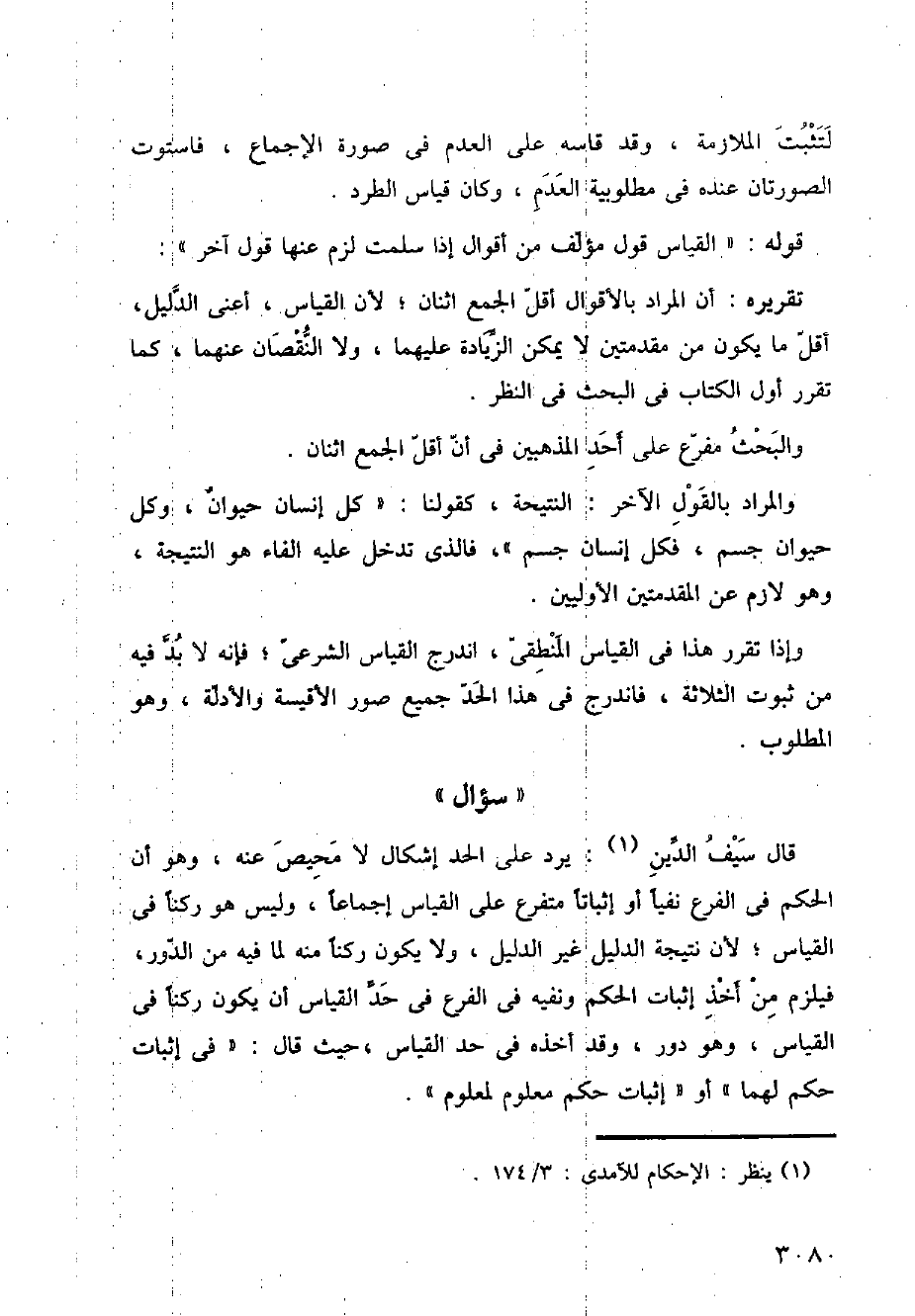 وإذا تقرر هذا في القياس المنطقي، اندرج القياس الشرعي؛ فإنه لا بد فيه من ثبوت الثلاثة، فاندرج في هذا الحد جميع صور الأقيسة والأدلة، وهو المطلوب.