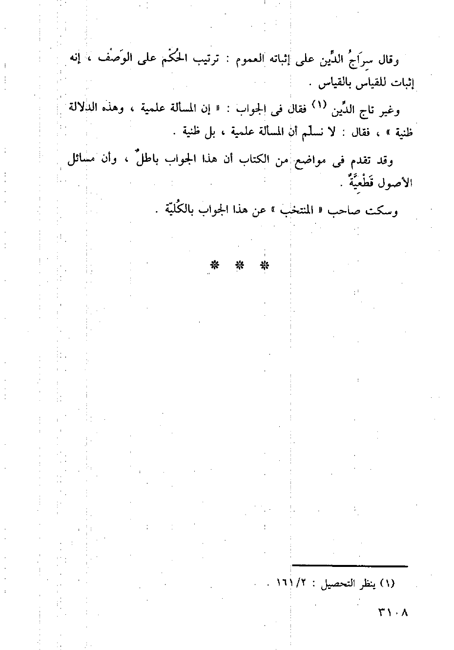 وغير تاج الدين فقال في الجواب: (إن المسألة علمية، وهذه الدلالة ظنية)، فقال: لا نسلم أن المسألة علمية، بل ظنية.