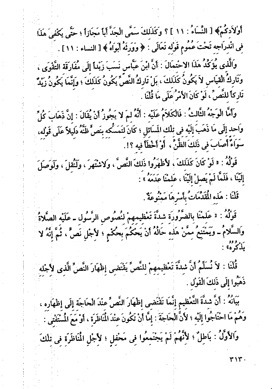 وأما الوجه الثالث: فالكلام عليه: أنه لم لا يجوز أن يقال: إن ذهاب كل واحد إلى ما ذهب إليه في تلك المسائل؛ كان لتمسكه بنص ظنه دليلاً على قوله، سواء أصاب في ذلك الظن، أو أخطأ فيه؟!.