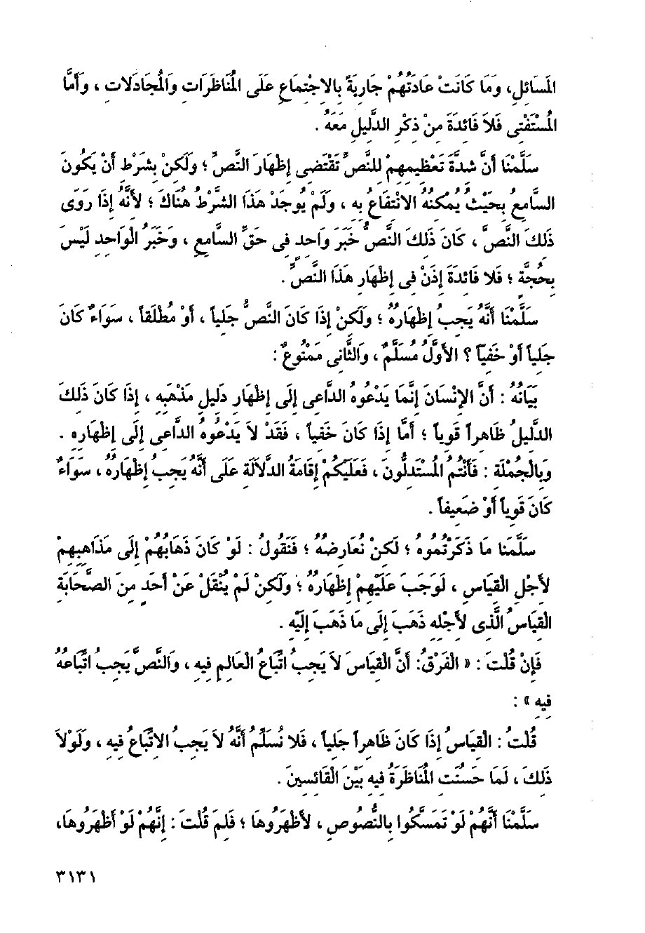 قلت: القياس إذا كان ظاهرًا جليًا، فلا نسلم أنه لا يجب الاتباع فيه، ولولا ذلك، لما حسنت المناظرة فيه بين القائسين.