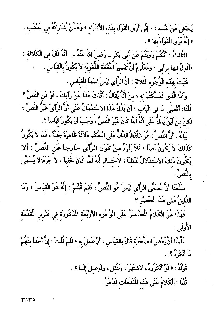 فثبت بهذه الوجوه الثلاثة: أن الرأي ليس اسمًا للقياس.