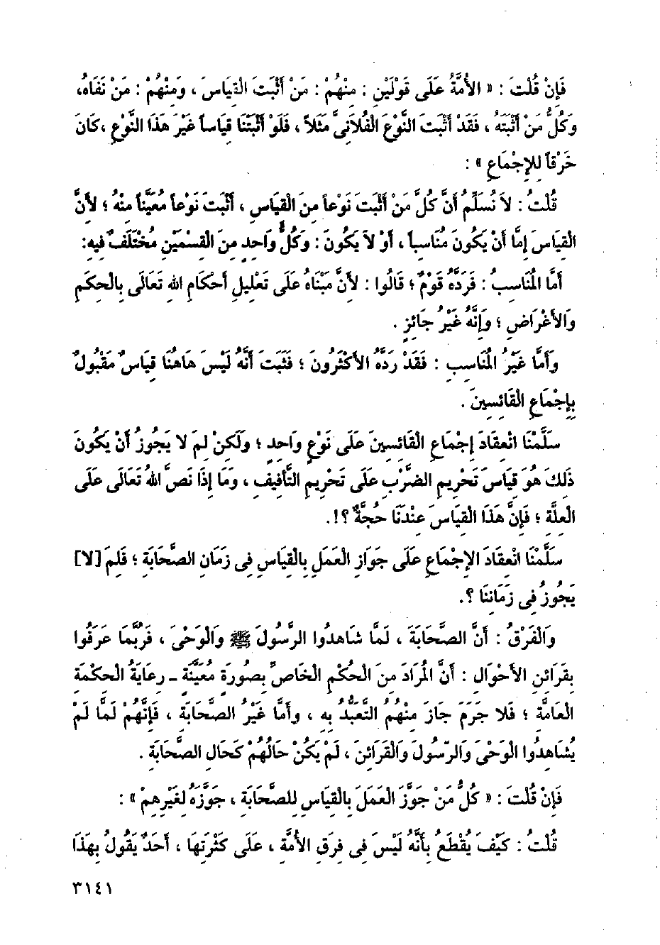 فإن قلت: (الأمة على قولين: منهم: من أثبت القياس، ومنهم: من نفاه، وكل من أثبته، فقد أثبت النوع الفلاني مثلاً، فلو أثبتنا قياسًا غير هذا النوع، كان خرقًا للإجماع):