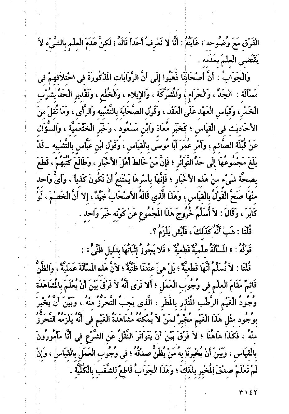 قوله: (المسألة علمية قطعية؛ فلا يجوز إثباتها بدليل ظني):