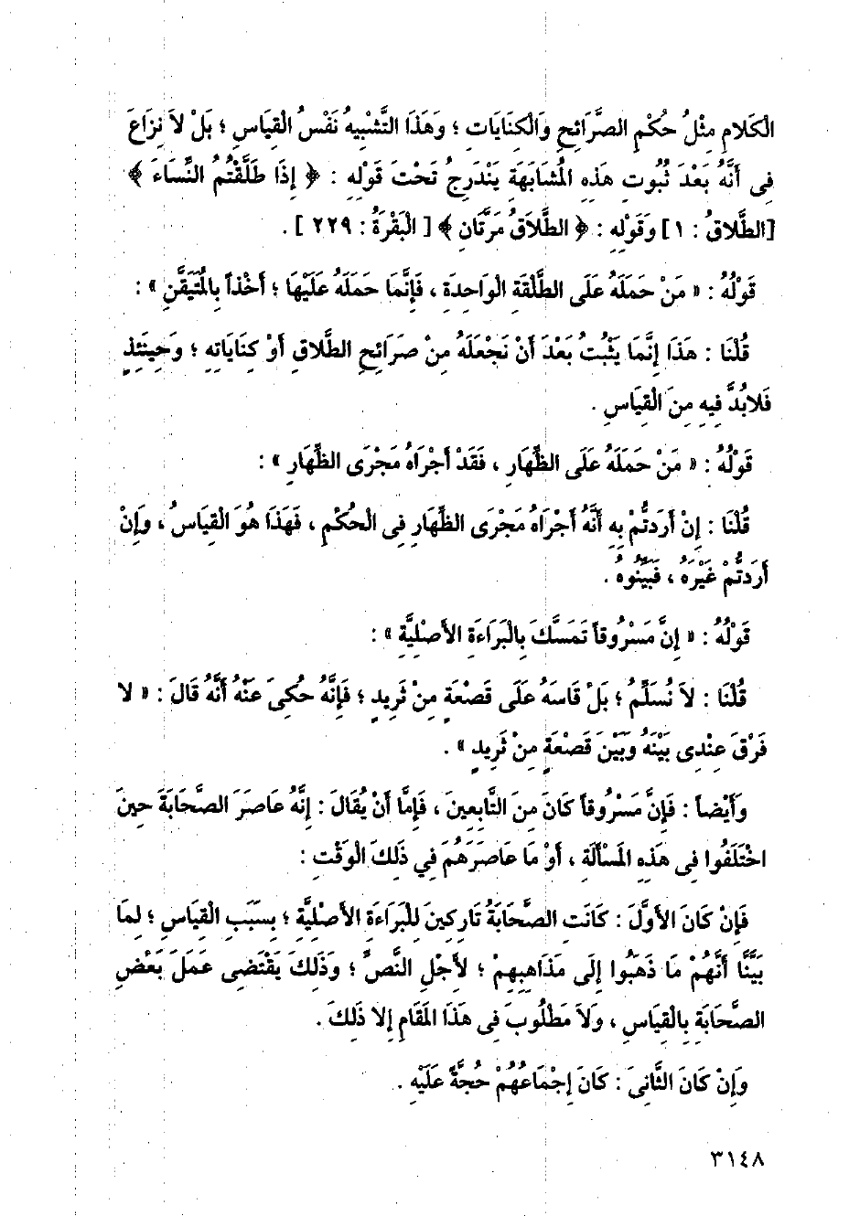 فإن كان الأول: كانت الصحابة تاركين للبراءة الأصلية؛ بسبب القياس؛ لما بيَّنَّا أنهم ما ذهبوا إلى مذاهبهم؛ لأجل النص؛ وذلك يقتضي عمل بعض الصحابة بالقياس، ولا مطلوب في هذا المقام إلا ذلك.