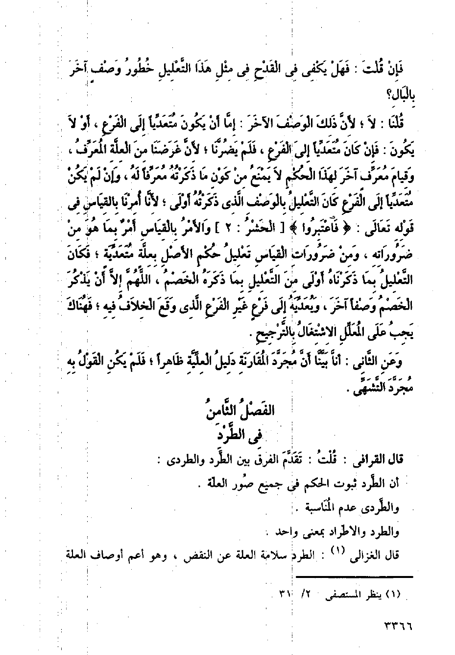 قال القرافي: قلت: تقدم الفرق بين الطرد والطردي: