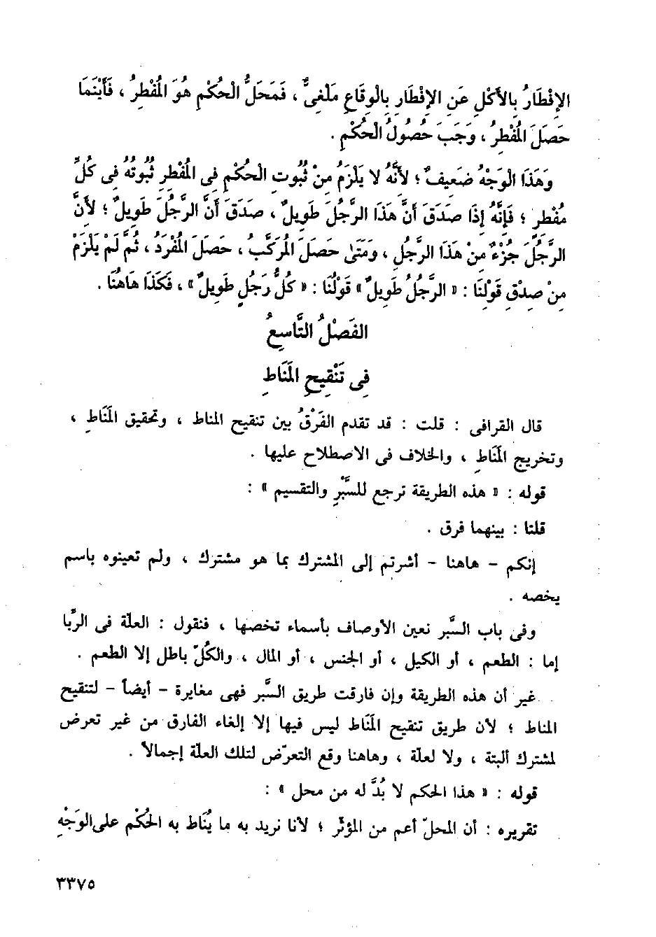 قال القرافي: قلت: قد تقدم الفرق بين تنقيح المناط، وتحقيق المناط، وتخريج المناط، والخلاف في الاصطلاح عليها.