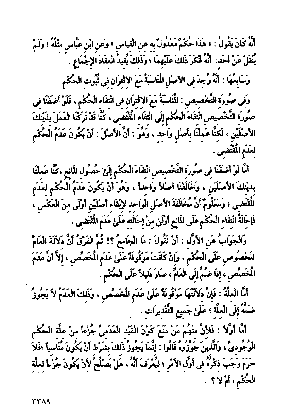 أما لو أضفنا في صورة التخصيص انتفاء الحكم إلى حصول المانع، كنا عملنا بذينك الأصلين، وخالفنا أصلا واحدا، وهو أن يكون عدم الحكم لعدم المقتضي؛ ومعلوم أن مخالفة الأصل الواحد لإبقاء أصلين أولى من العكس، فإحالة انتفاء الحكم على المانع أولى من إحالته على عدم المقتضي.