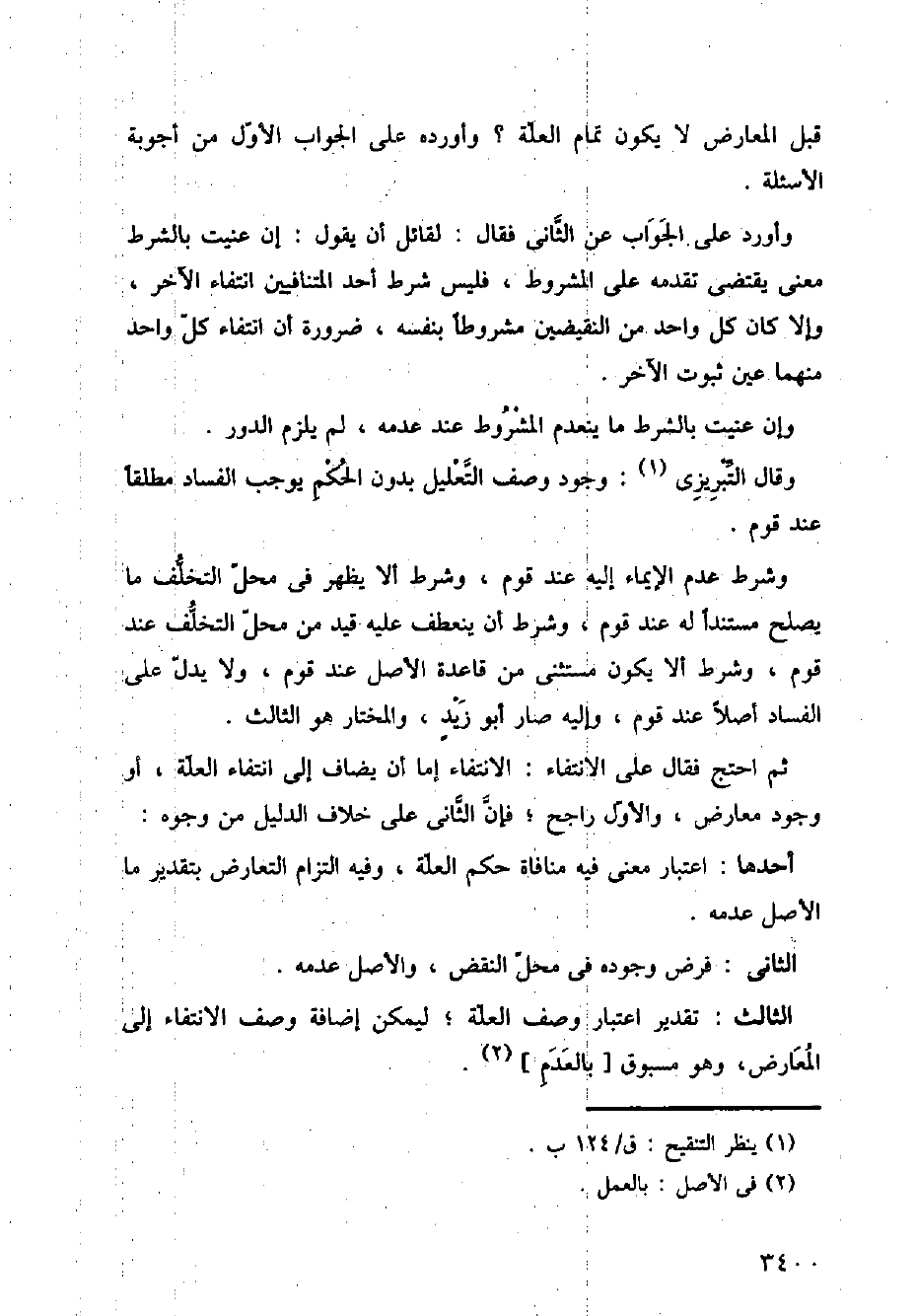 قبل المعارض لا يكون تمام العلة؟ وأورده على الجواب الأول من أجوبة الأسئلة.