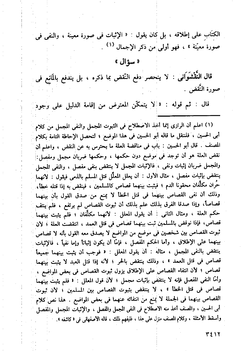 الكتاب على إطلاقه، بل كان يقول: (الإثبات في صورة معينة، والنفي في صورة معينة)، فهو أولى من ذكر الإجمال.