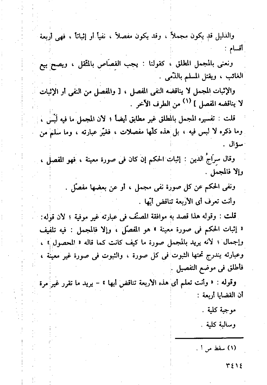 قلت: وقوله هذا قصد به موافقة المصنف في عبارته غير موفية؛ لأن قوله: (إثبات الحكم في صورة معينة) هو المفصل، وإلا فالمجمل: فيه تلفيف وإجمال؛ لأنه يريد بالمجمل صورة ما كيف كانت كما قاله (المحصول)، وعبارته يندرج تحتها الثبوت في كل صورة، والثبوت في صورة غير معينة، فأطلق في موضع التفصيل.