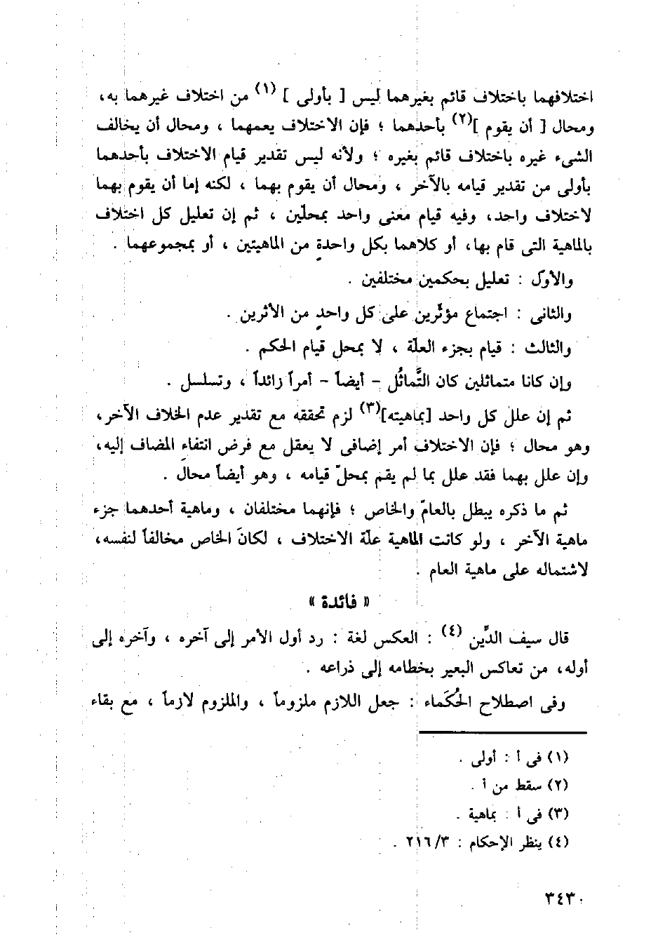 قال سيف الدين: العكس لغة: رد أول الأمر إلى آخره، وآخره إلى أوله، من تعاكس البعير بخطامه إلى ذراعه.