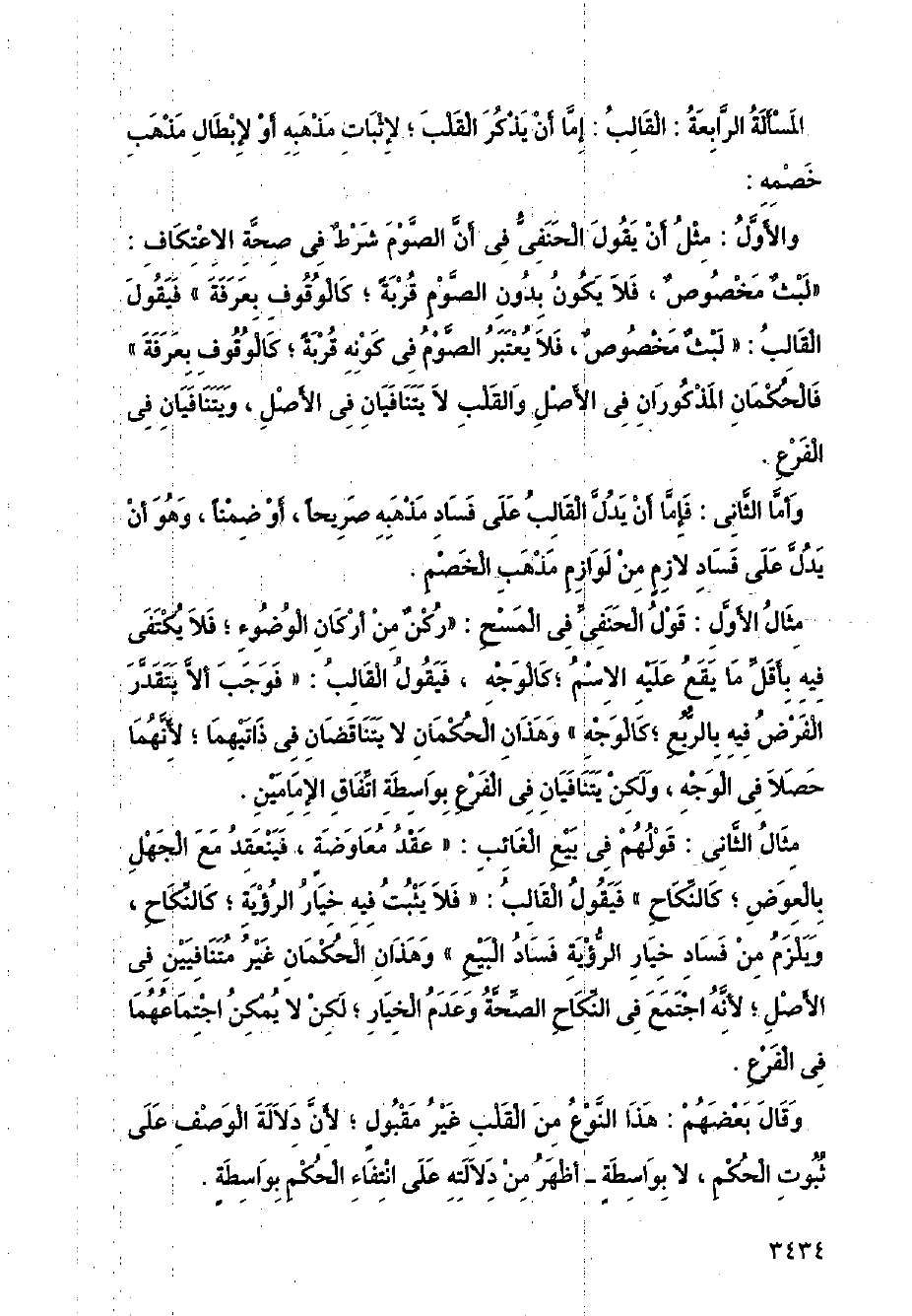 المسألة الرابعة: القالب: إما أن يذكر القلب؛ لإثبات مذهبه أو لإبطال مذهب خصمه: