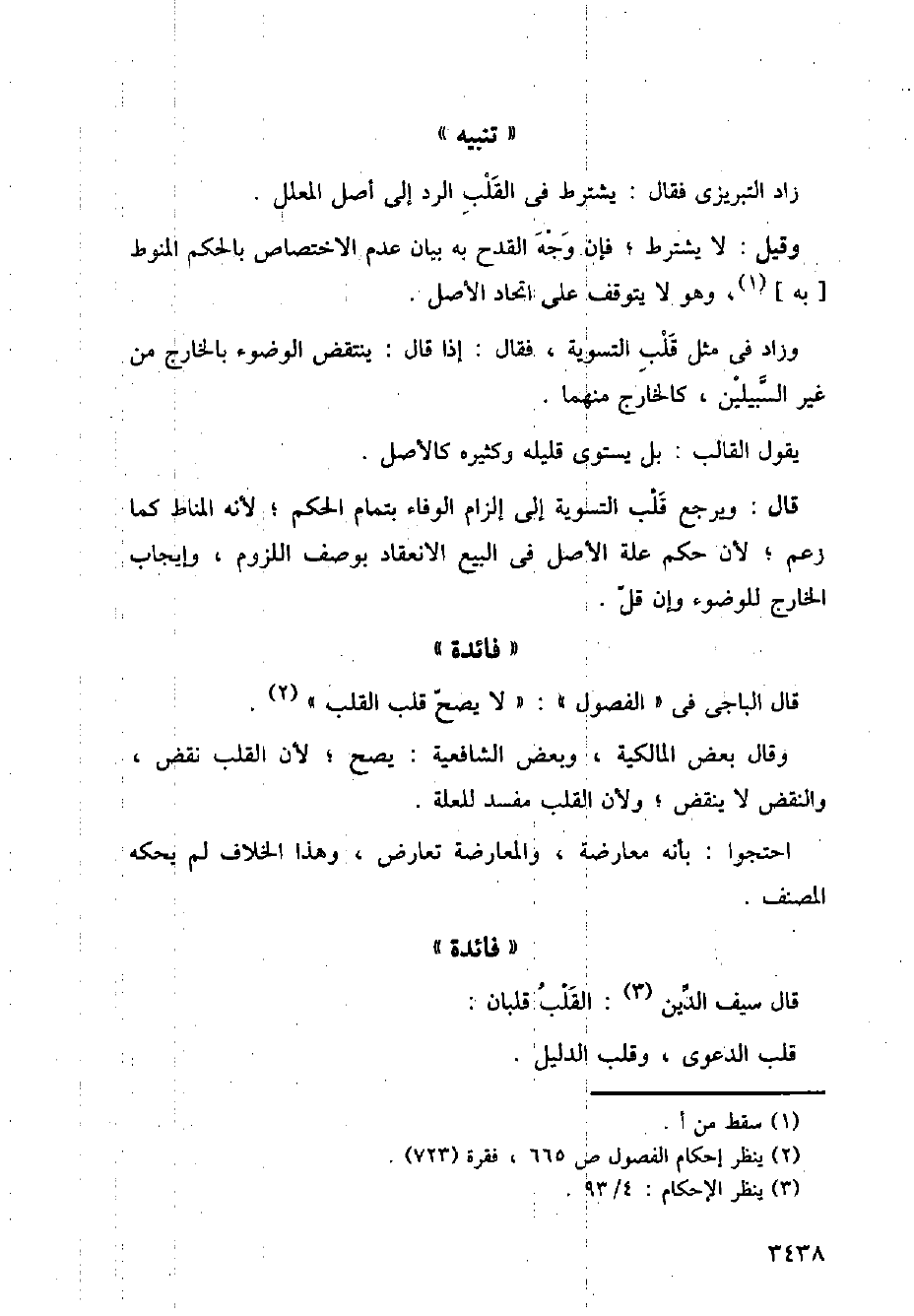 زاد التبريزي فقال: يشترط في القلب الرد إلى أقل المعلل.
