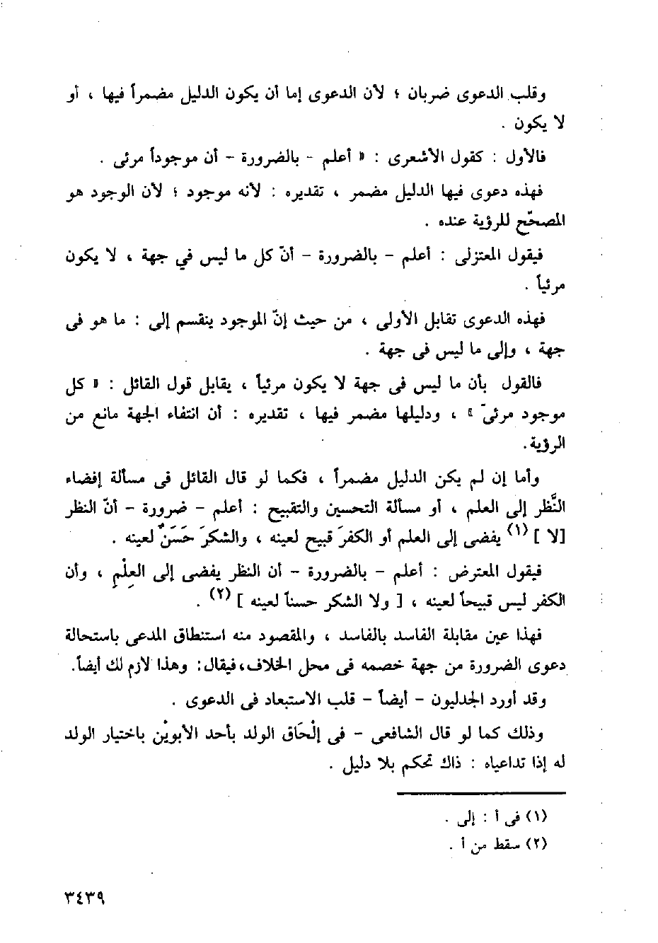 فالأول: كقول الأشعري: "أعلم- بالضرورة- أن موجودا مرئي.