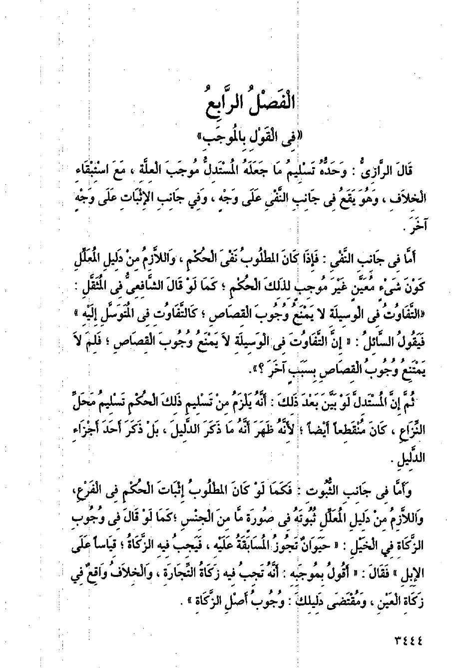 أمال في جانب النفى: فإذا كان المطلوب نفى الحكم، واللازم من دليل المعلل كون شيء معين غير موجب لذلك الحكم؛ كما لو قال الشافعي في المثقل: "التفاوت في الوسيلة لا يمنع وجوب القصاص؛ كالتفاوت في المتوسل إليه" فيقول السائل: "إن التفاوت في الوسيلة لا يمنع وجوب القصاص؛ فلم لا يمتنع وجوب القصاص بسبب آخر؟ ".