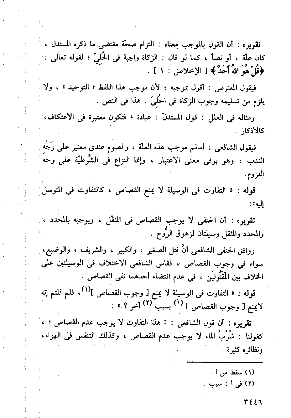 فيقول المعترض: أقول بموجبه؛ لأن موجب هذا اللفظ "التوحيد"، ولا يلزم من تسليمه وجوب الزكاة في الحلى. هذا في النص.