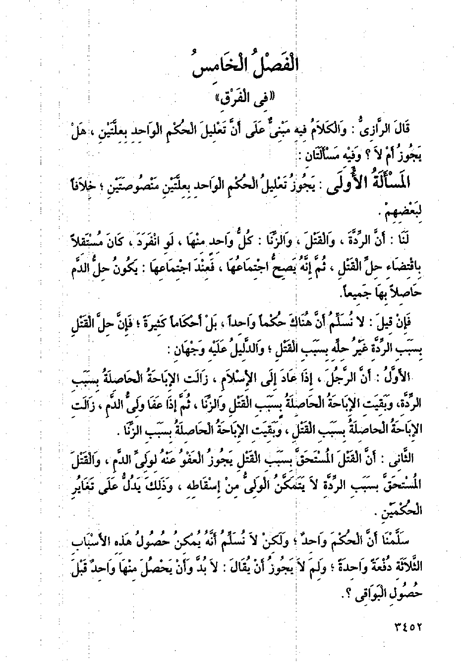 المسألة الأول: يجوز تعليل الحكم الواحد بعلتين منصوصتين؛ خلافا لبعضهم.
