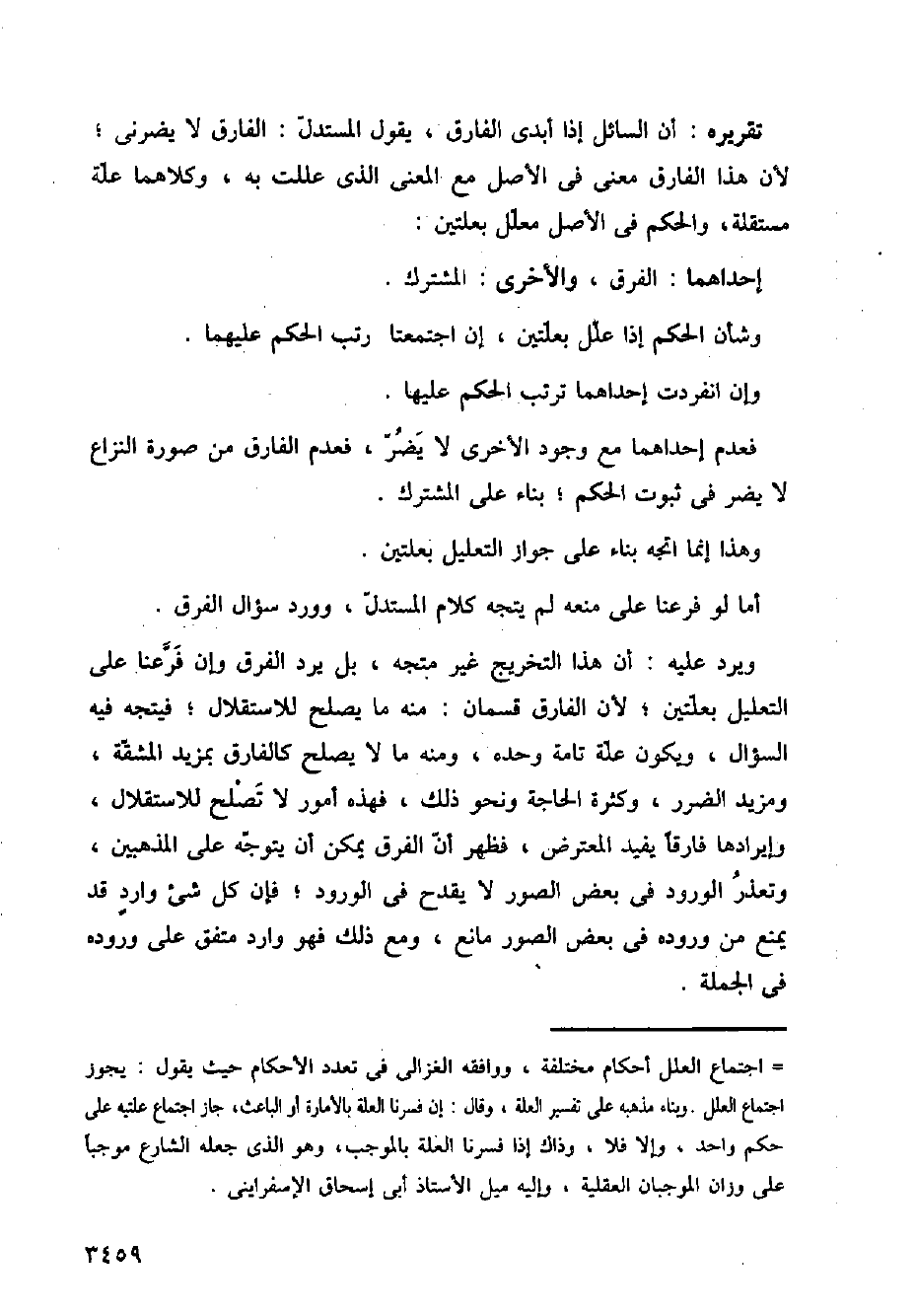 ويرد عليه: أن هذا التخريج غير متجه، بل يرد الفرق وإن فرعنا على التعليل بعلتين؛ لأن الفارق قسمان: منه ما يصلح للاستقلال؛ فيتحه فيه السؤال، ويكون علة تامة وحده، ومنه ما لا يصلح كالفارق بمزيد المشقة، ومزيد الضرر، وكثرة الحاجة ونحو ذلك، فهذه أمور لا تصلح للاستقلال، وإيرادها فارقا يفيد المعترض، فظهر أن الفرق يمكن أن يتوجه على المذهبين، وتعذر الورود في بعض الصور لا يقدح في الورود؛ فإن كل شيء وارد قد يمنع من وروده في بعض الصور مانع، ومع ذلك فهو وارد متفق على وروده في الجملة.