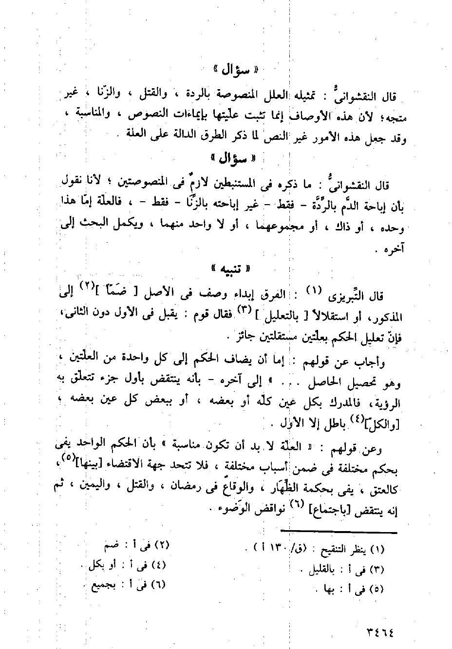 قال النقشواني: ما ذكره في المستنبطين لازم في المنصوصتين؛ لأنا نقول بأن إباحة الدم بالردة- فقط- غير إباحته بالزنا- فقط-، فالعلة إما هذا وحده، أو ذاك، أو مجموعهما، أو لا واحد منهما، ويكمل البحث إلى آخره.