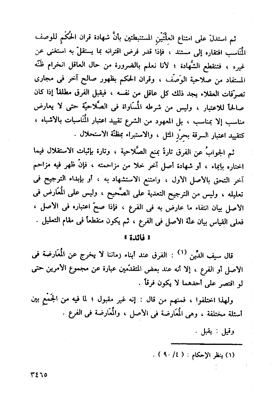 قال سيف الدين: الفرق عند أبناء زماننا لا يخرج عن المعارضة في الأصل أو الفرع، إلا أنه عند بعض المتقدمين عبارة عن مجموع الأمرين حتى لو اقتصر على أحدهما لا يكون فرقا.