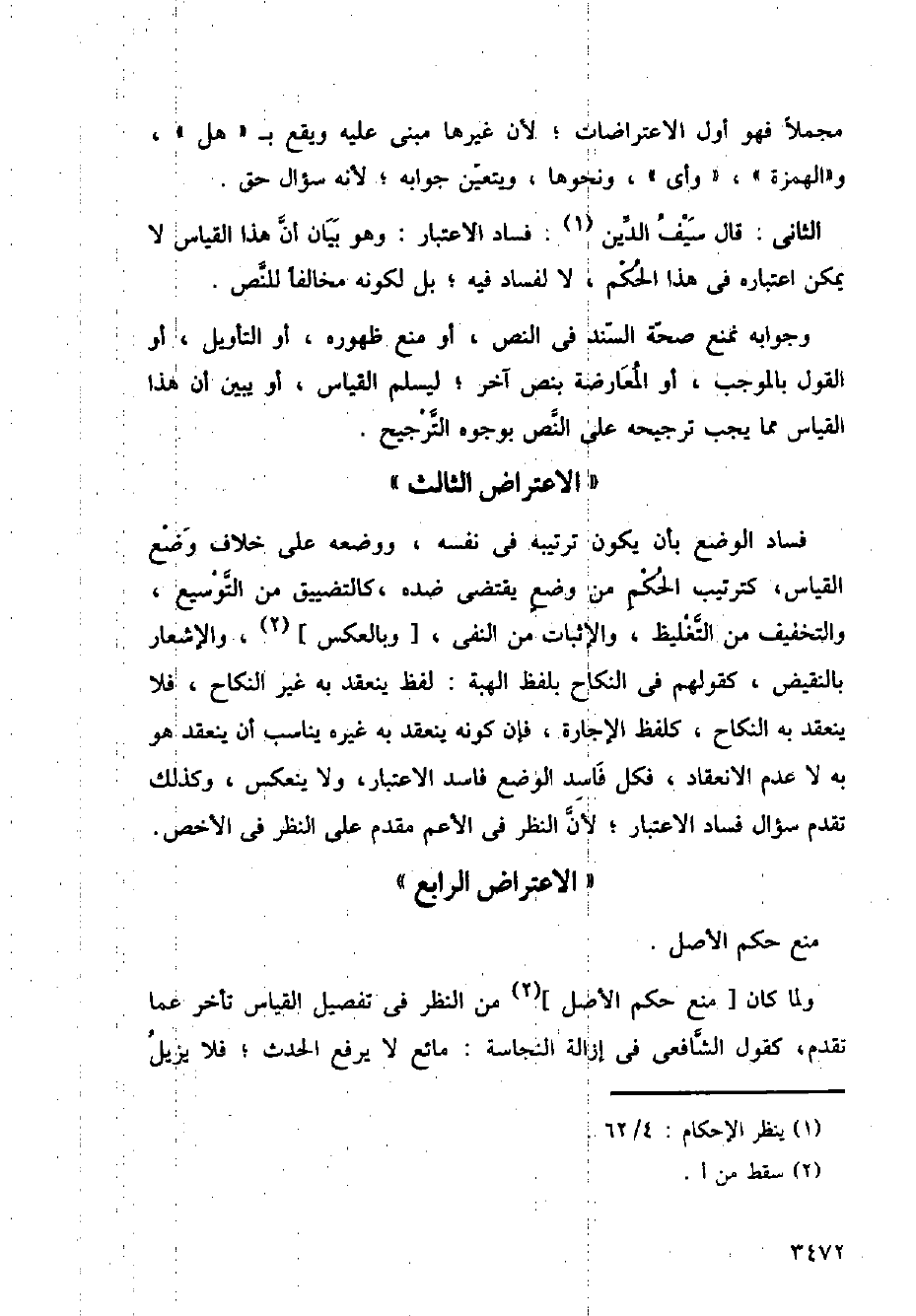 الثاني: قال سيف الدين: فساد الاعتبار: وهو بيان أن هذا القياس لا يمكن اعتباره في هذا الحكم، لا لفساد فيه؛ بل لكونه مخالفا للنص.