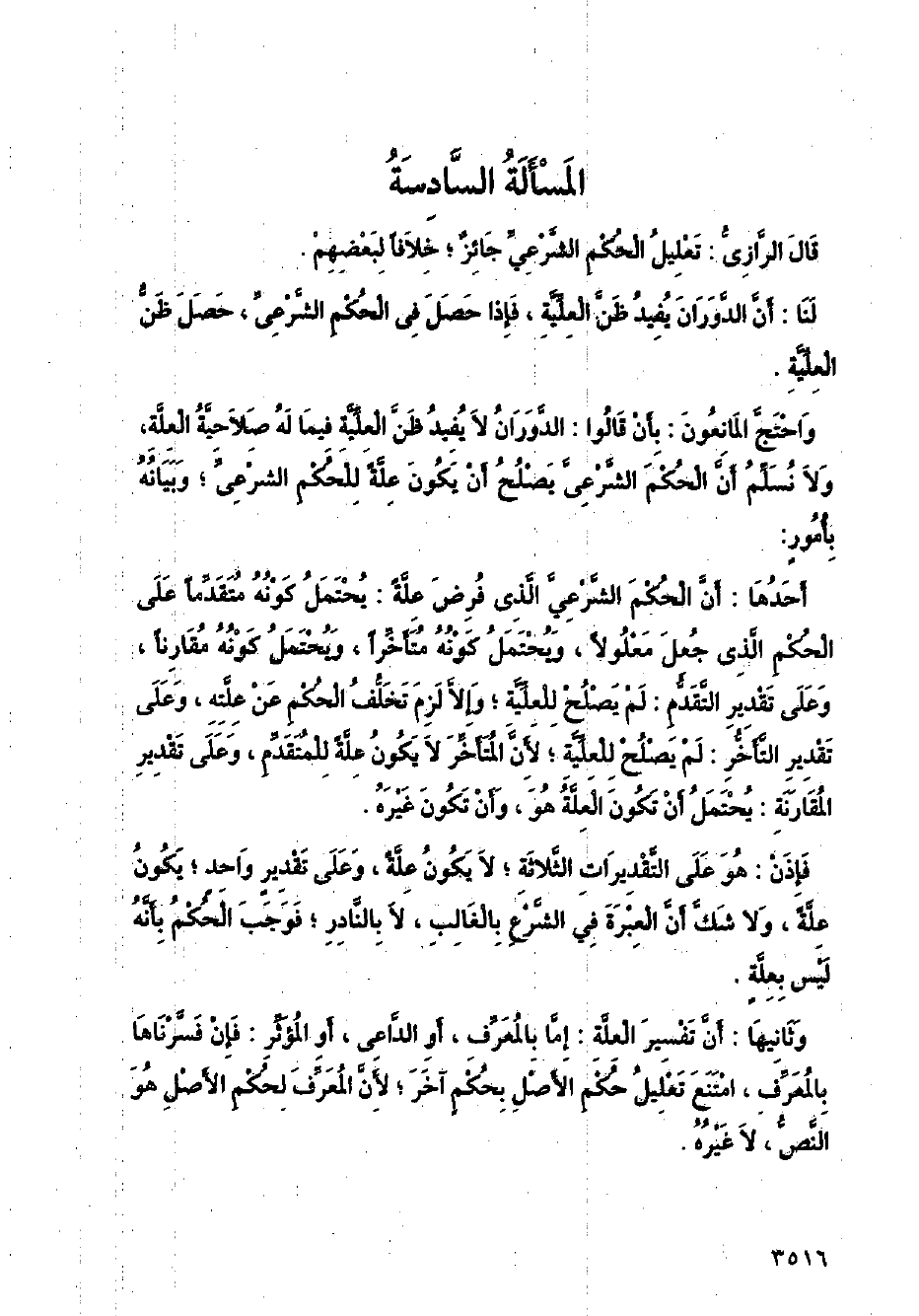 قال الرازي: تعليل الحكم الشرعي جائز؛ خلافا لبعضهم.