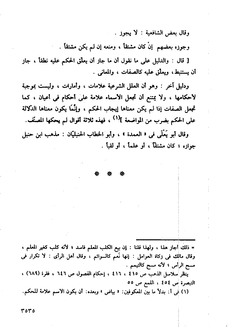 وقال أبو يعلى في (العمدة)، وأبو الخطاب الحنبليان: مذهب ابن حنبل جوازه؛ كان مشتقا، أو علما، أو لقبا.