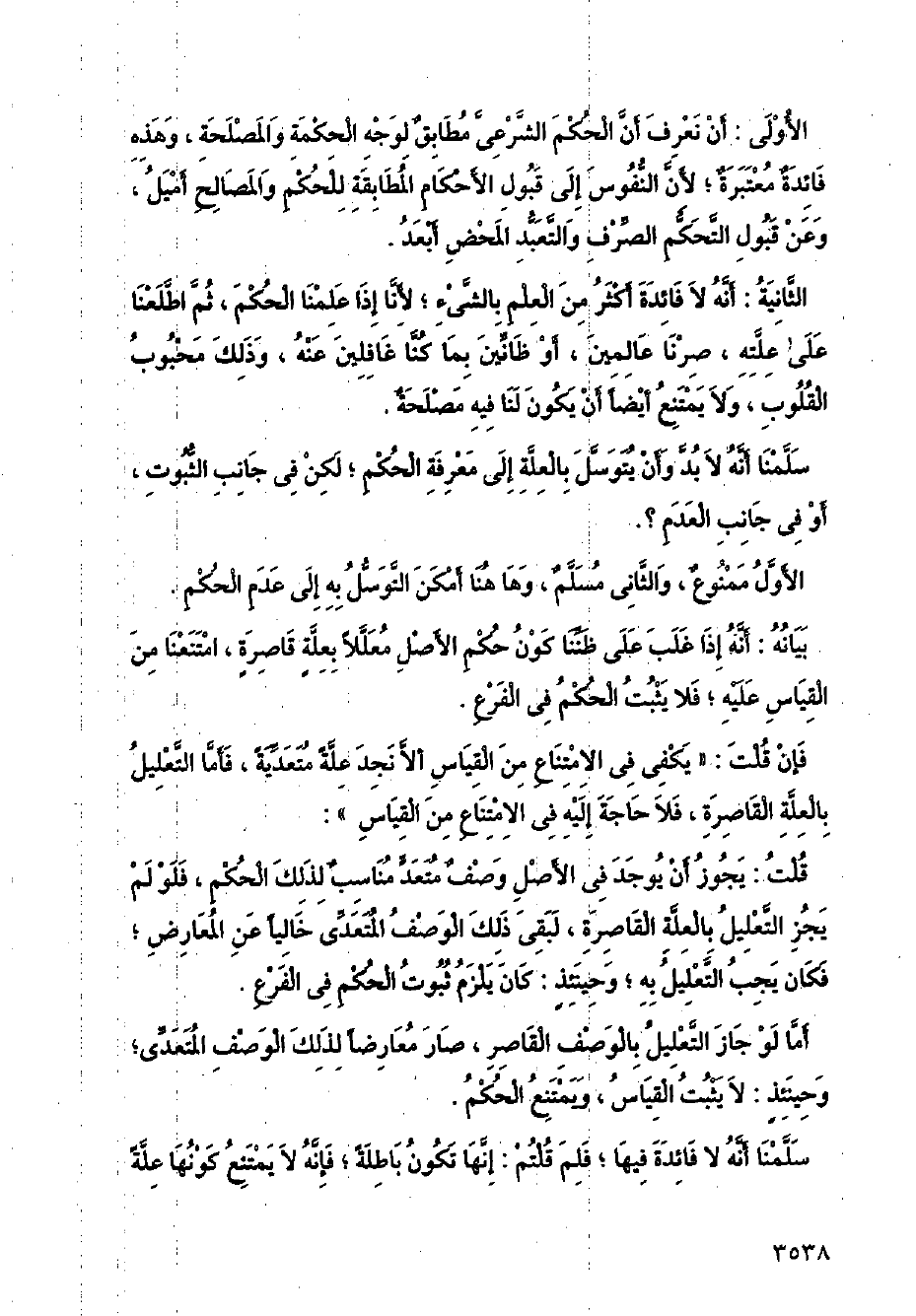 فإن قلت: (يكفى في الامتناع من القياس ألا نجد علة متعدية، فأما التعليل بالعلة القاصرة، فلا حاجة إليه في الامتناع من القياس):