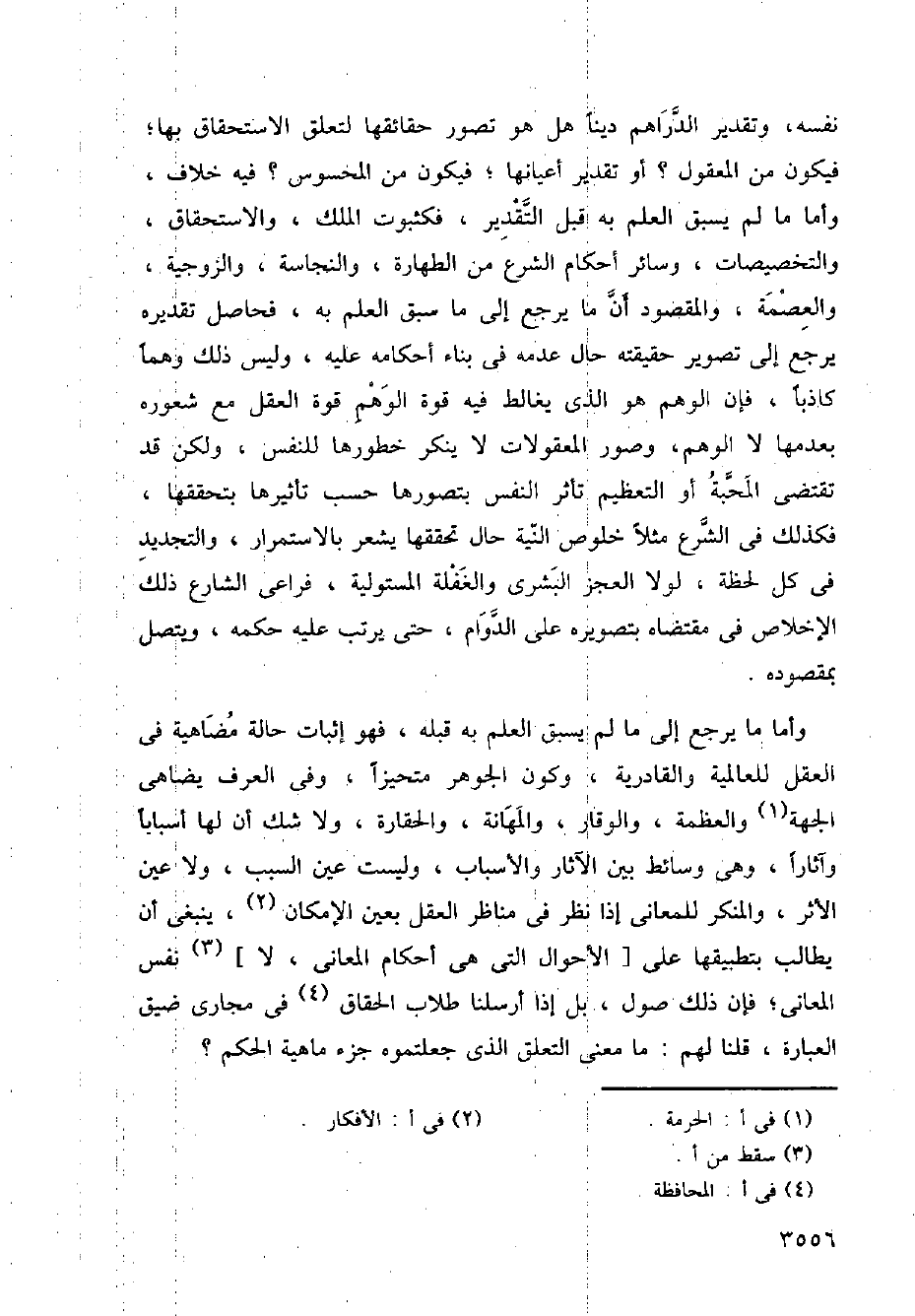 وأما ما يرجع إلى ما لم يسبق العلم به قبله، فهو إثبات حالة مضاهية في العقل للعالمية والقادرية، وكون الجوهر متحيزا، وفي العرف يضاهي الجهة والعظمة، والوقار، والمهانة، والحقارة، ولا شك أن لها أسبابا وآثارا، وهي وسائط بين الآثار والأسباب، وليست عين السبب، ولا عين الأثر، والمنكر للمعاني إذا نظر في مناظر العقل بعين الإمكان، بنبغي أن يطالب بتطبيقها على [الأحوال التي هي أحكام المعاني، لا] نفس المعاني؛ فإن ذلك صول، بل إذا أرسلنا طلاب الحقاق في مجاري ضيق العبارة، قلنا لهم: ما معني التعلق الذي جعلتموه جزء ماهية الحكم؟
