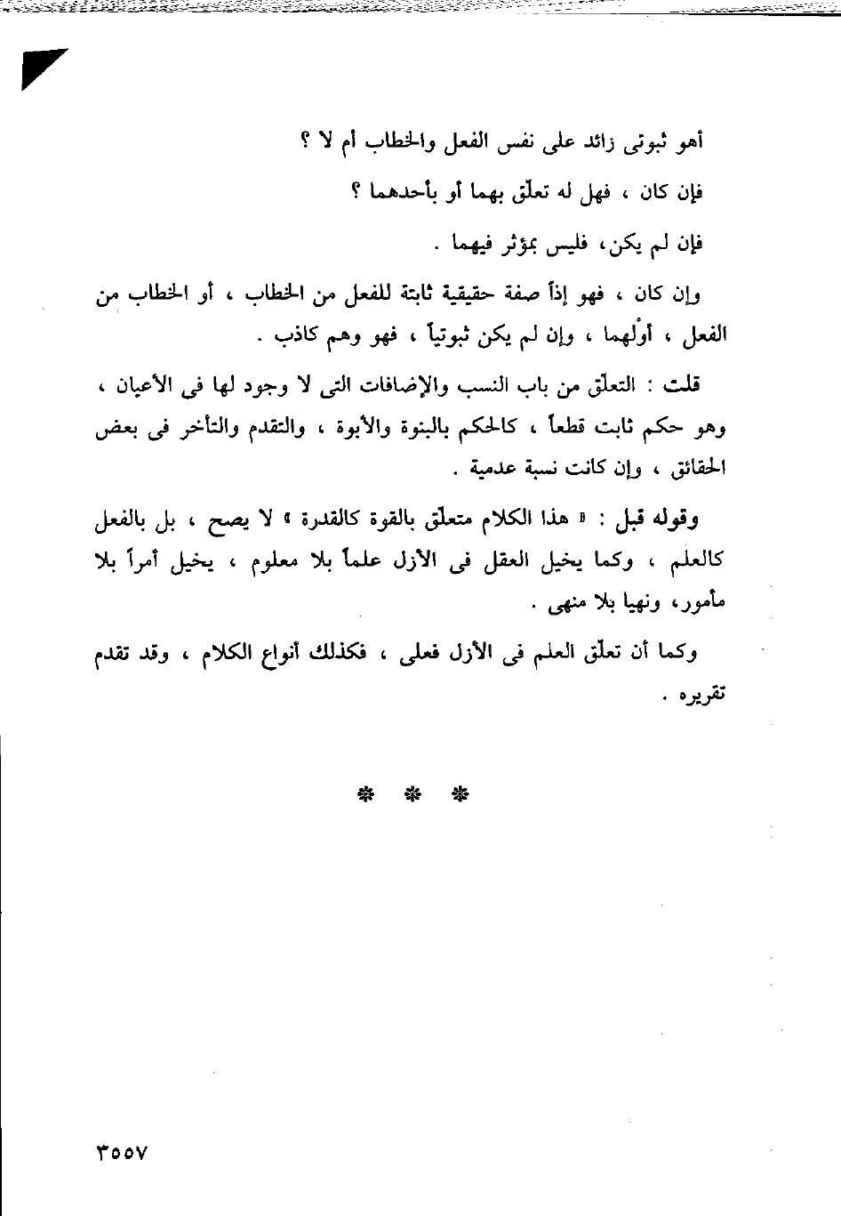 وقوله قبل: (هذا الكلام متعلق بالقوة كالقدرة) لا يصح، بل بالفعل كالعلم، وكما يخيل العقل ف الأزل علما بلا معلوم، يخيل أمرا بلا مأمور، ونهيا بلا منهي.