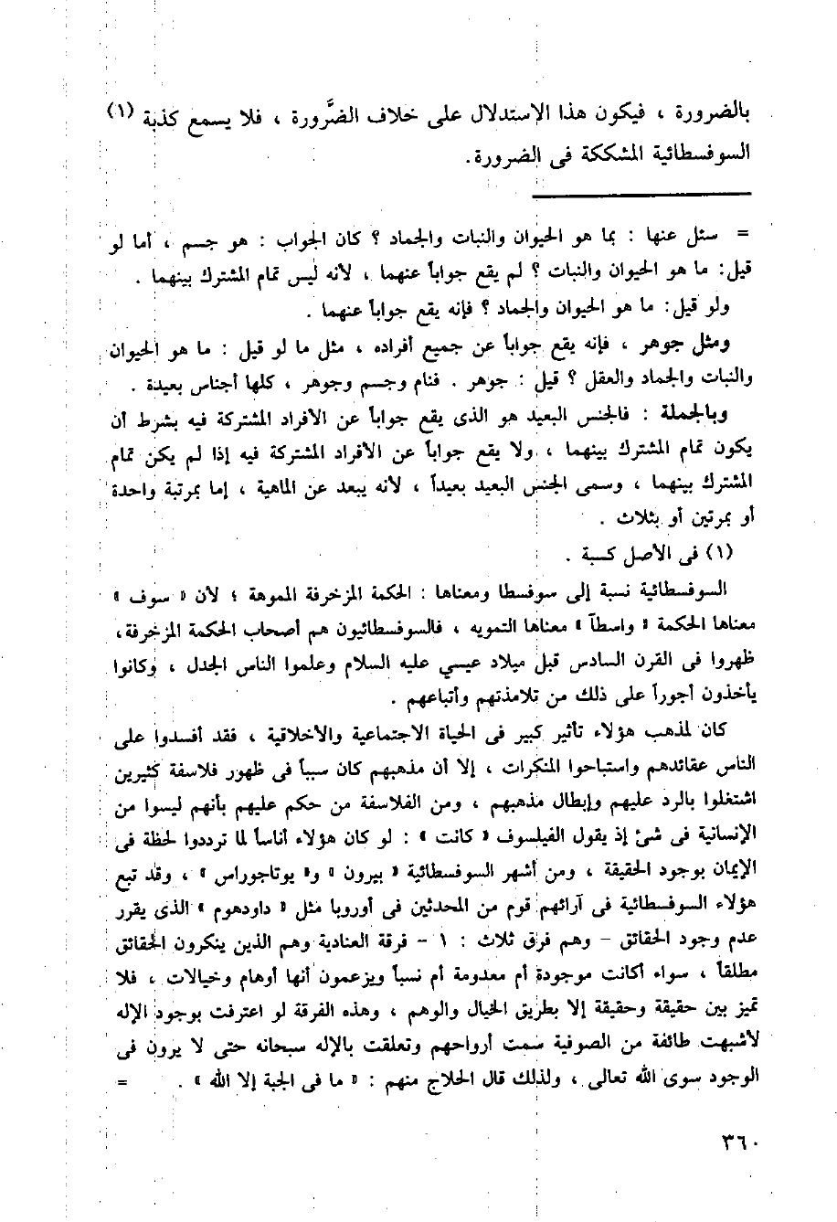 بالضرورة، فيكون هذا الاستدلال على خلاف الضرورة، فلا يسمع كذبة السوفسطائية المشككة في الضرورة.