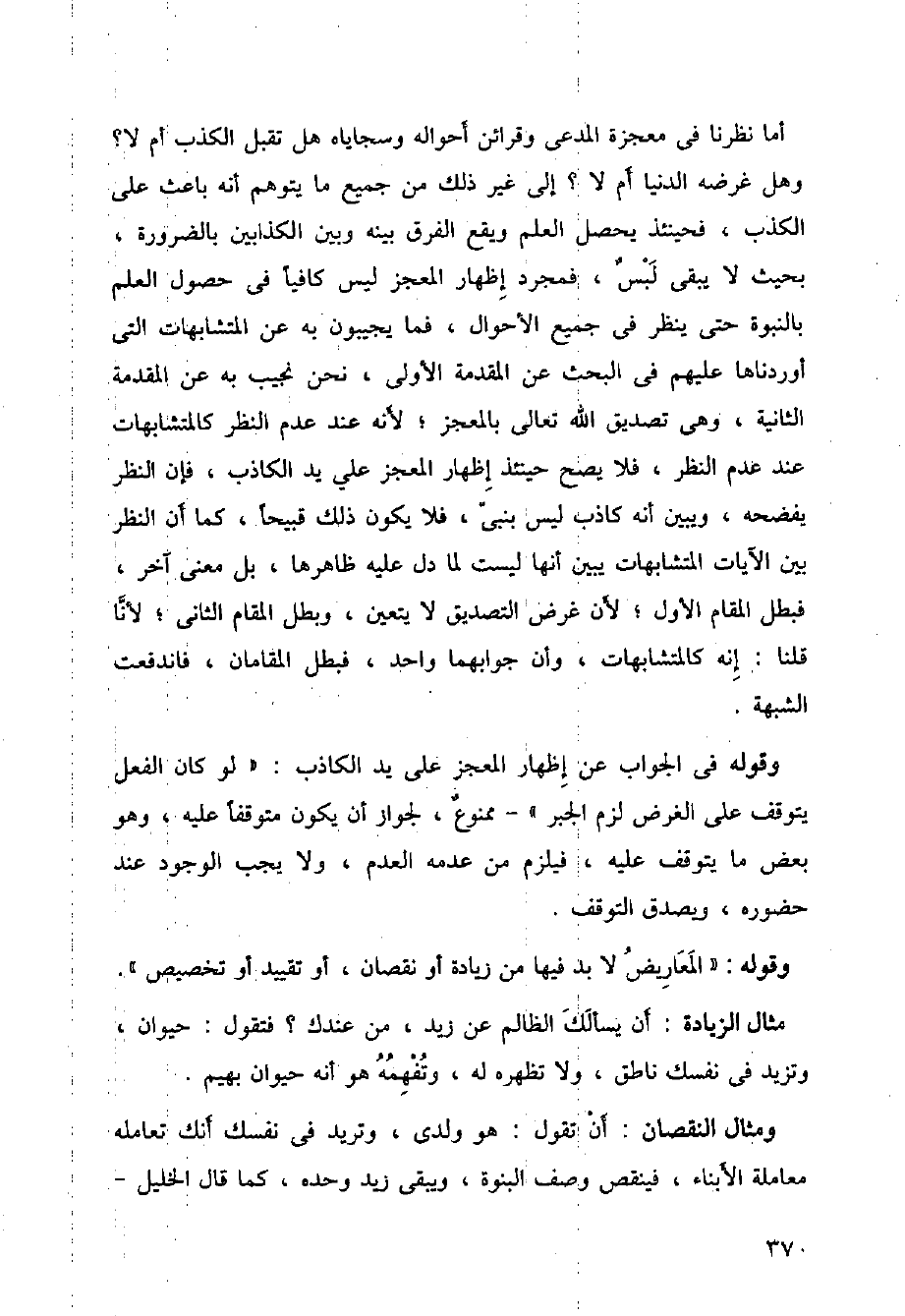 أما نظرنا في معجزة المدعي وقرائن أحواله وسجاياه هل تقبل الكذب أم لا؟