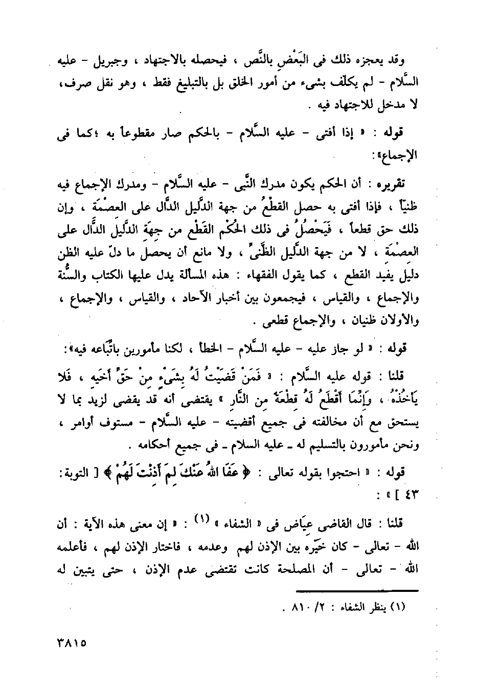 قلنا: قوله عليه السلام: (فمن قضيت له بشيءٍ من حق أخيه، فلا يأخذه، وإنما أقطع له قطعة من النار) يقتضي أنه قد يقضي لزيد بما لا يستحق مع أن مخالفته في جميع أقضيته - عليه السلام - مستوف أوامر، ونحن مأمورون بالتسلم له - عليه السلام - في جميع أحكامه.