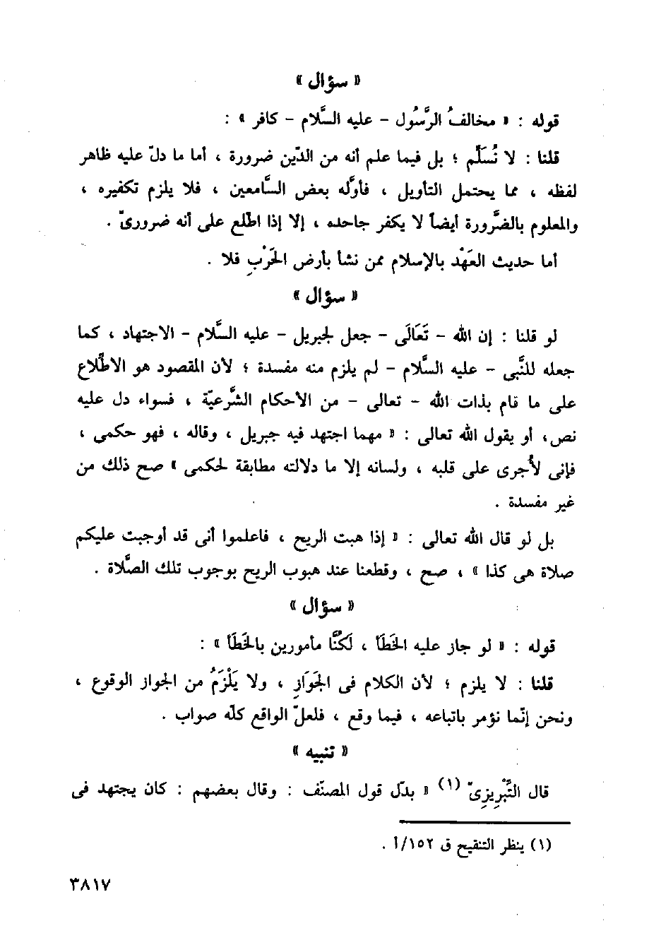 لو قلنا: إن الله - تعالى - جعل لجبريل - عليه السلام - الاجتهاد، كما جعله للنبي - عليه السلام - لم يلزم منه مفسدة؛ لأن المقصود هو الاطلاع على ما قام بذات الله - تعالى - من الأحكام الشرعية، فسواء دل عليه نص، أو يقول الله تعالى: (مهما اجتهد فيه جبريل، وقاله، فهو حكمي، فإني لأجري على قلبه، ولسانه إلا ما دلالته مطابقة لحكمي) صح ذلك من غير مفسدة.