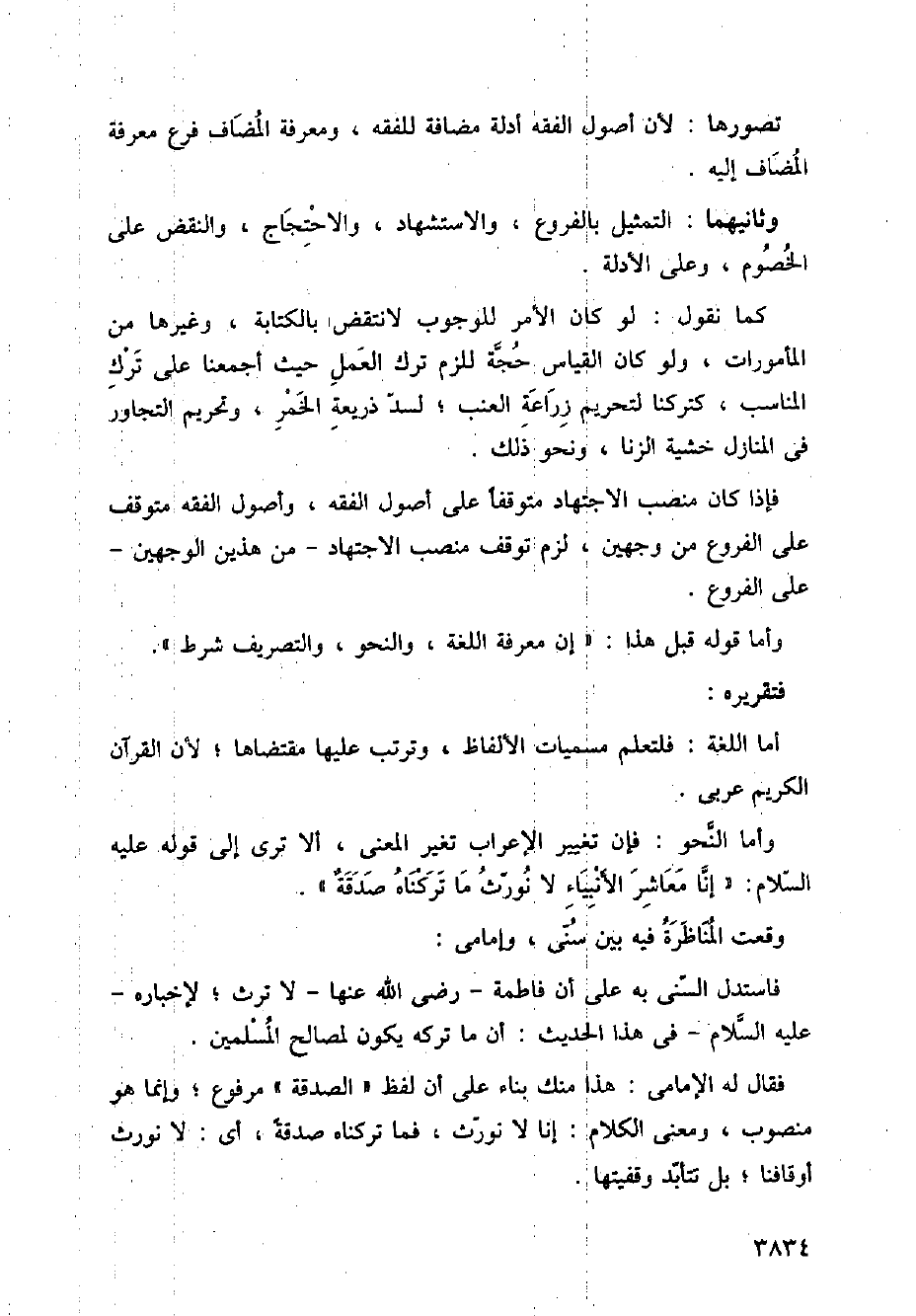 فقال له الإمامي: هذا منك بناء على أن لفظ (الصدقة) مرفوع؛ وإنما هو منصوب، ومعنى الكلام: إنا لا نورث، فما تركناه صدقةً، أي: لا نورث أوقافنا؛ بل تتأبد وقفيتها.