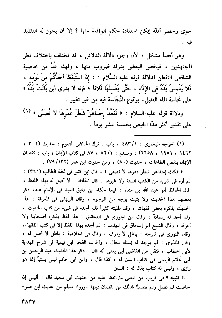 وهو أيضًا مشكل؛ لأن وجوه دلالة الدلائل، قد تختلف باختلاف نظر المجتهدين، فيخص البعض بدرك ضروب منها، ولهذا عد من خاصية الشافعي التفطن لدلالة قوله عليه السلام: (إذا استيقظ أحدكم من نومه، فلا يغمس يده في الإناء، حتى يغسلها ثلاثًا؛ فإنه لا يدري أين باتت يده) على نجاسة الماء القليل، بوقوع النجاسة فيه من غير تغيير.