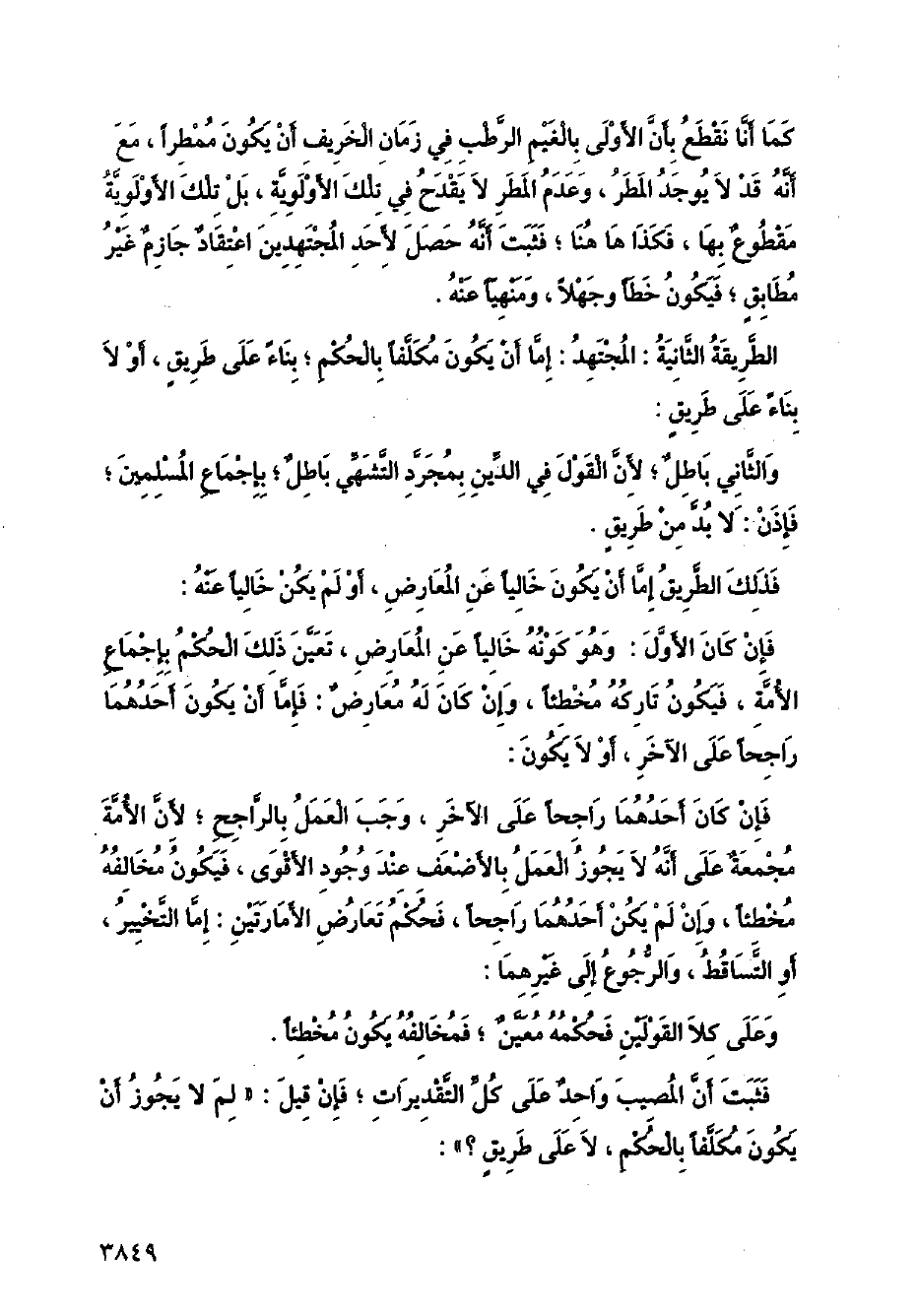 كما أنا نقطع بأن الأولى بالغيم الرطب في زمان الخريف أن يكون ممطرًا، مع أنه قد لا يوجد المطر، وعدم المطر لا يقدح في تلك الأولوية، بل تلك الأولوية مقطوع بها، فكذا ها هنا؛ فثبت أنه حصل لأحد المجتهدين اعتقاد جازم غير مطابق؛ فيكون خطأ وجهلاً، ومنهيًا عنه.