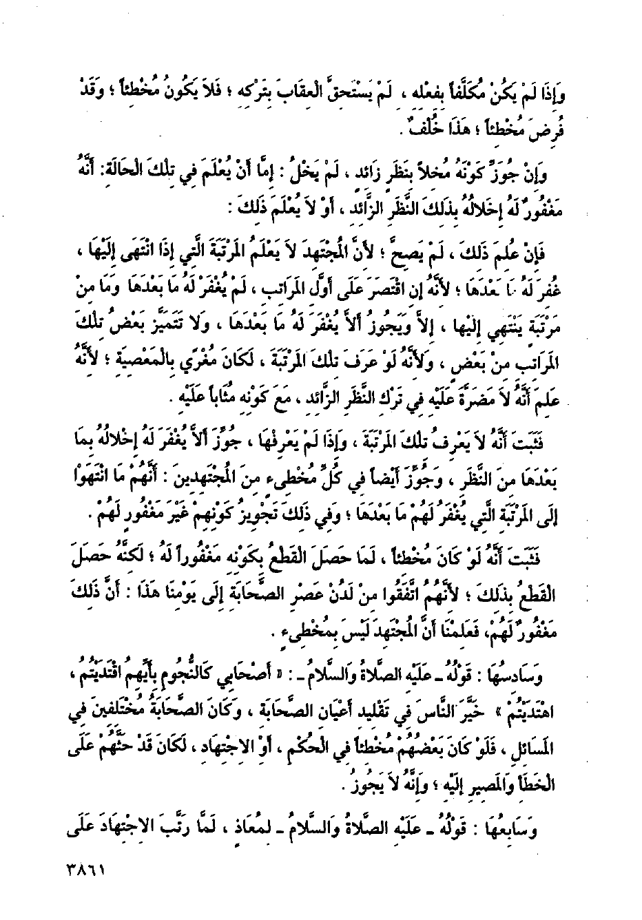 فثبت أنه لا يعرف تلك المرتبة، وإذا لم يعرفها، جوز ألا يغفر له إخلاله بما بعدها من النظر، وجوز أيضًا في كل مخطئ من المجتهدين: أنهم ما انتهوا إلى المرتبة التي يغفر لهم ما بعدها؛ وفي ذلك تجويز كونهم غير مغفورٍ لهم.